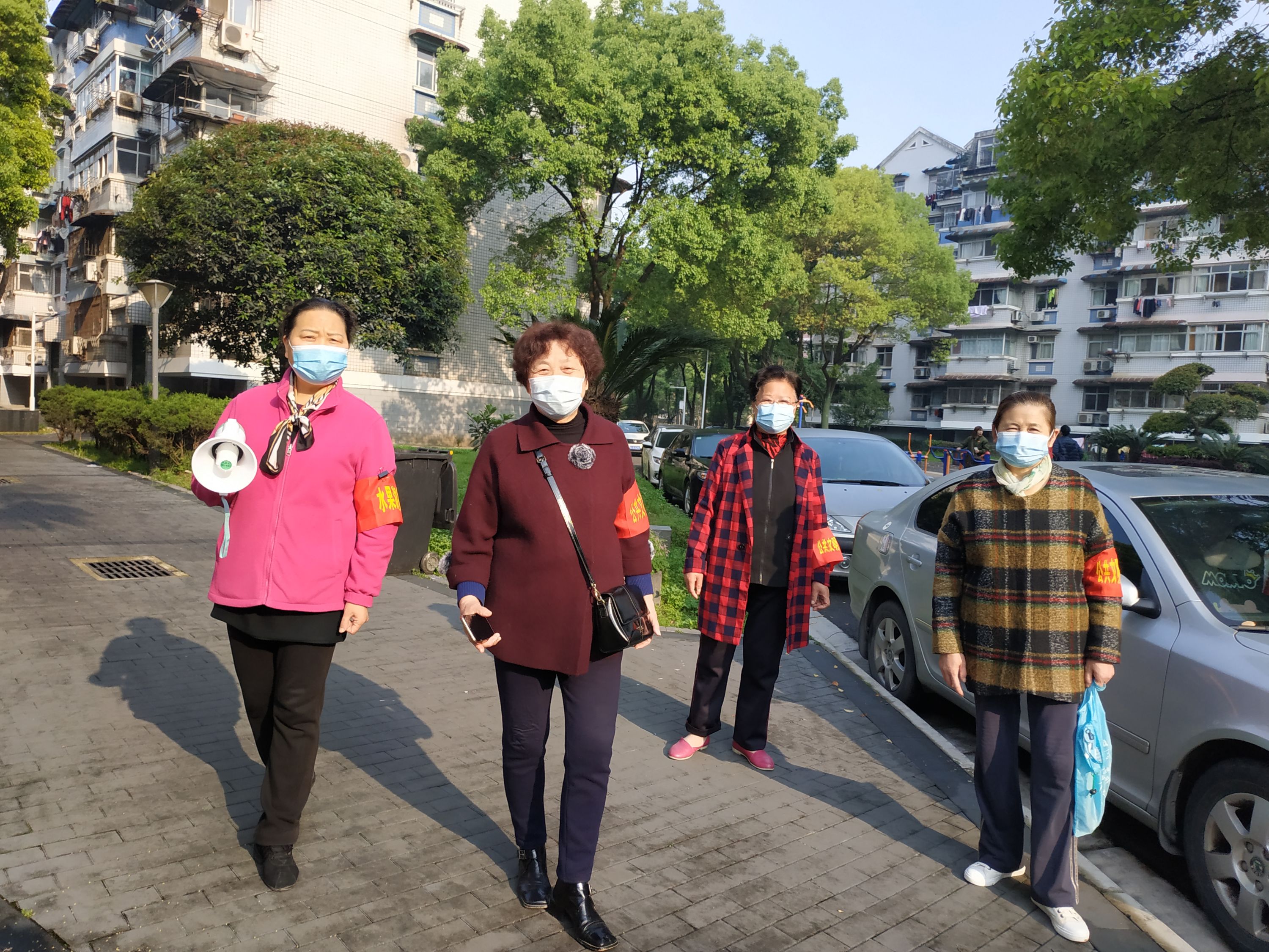 义务监督员们正在社区里巡逻。 通讯员钟丽芳 摄