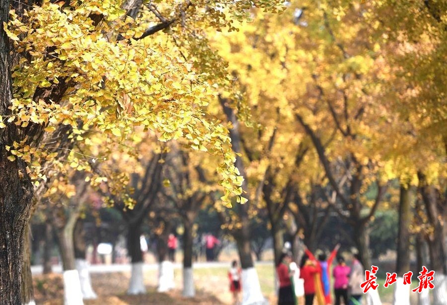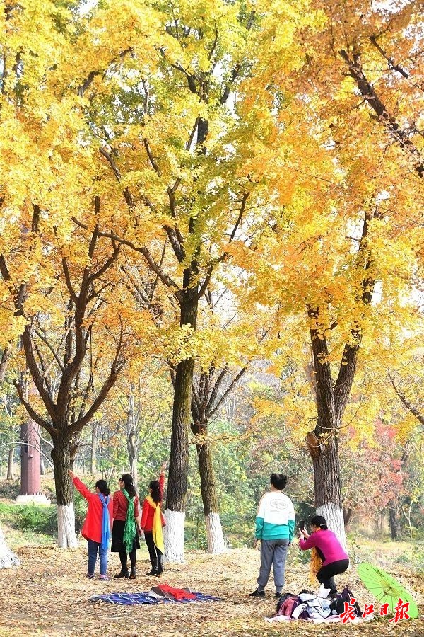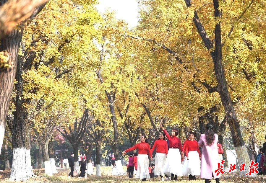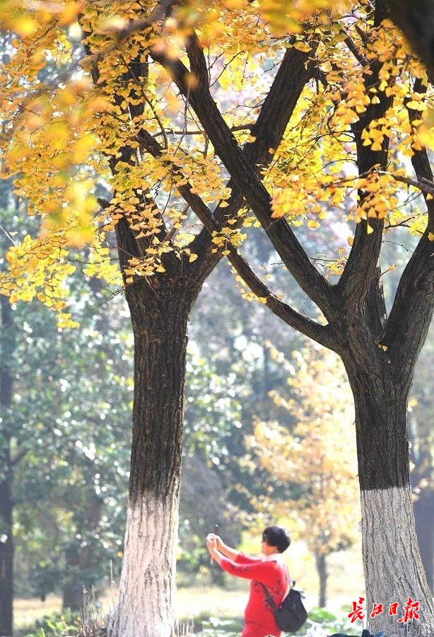 长江日报大武汉客户端11月18日讯 11月18日,武汉市马鞍山森林公园林海中藏着一处“银杏谷”,100余棵胸径40厘米以上的银杏树披上华美外衣,金黄色的银杏叶灿若云锦,形成一道色彩绚丽的金色风景线。(长江日报记者高勇 摄影报道) 【编辑:邓腊秀】