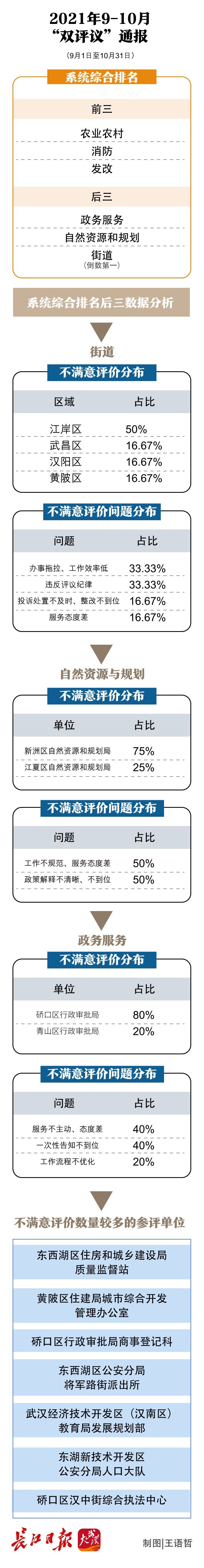 长江日报大武汉客户端11月18日讯(记者杨荣峰 通讯员武治庸办)近日,武汉市治庸问责办发布了2021年“双评议”第六期月报,对9月1日至10月31日“双评议”情况做了综合分析。