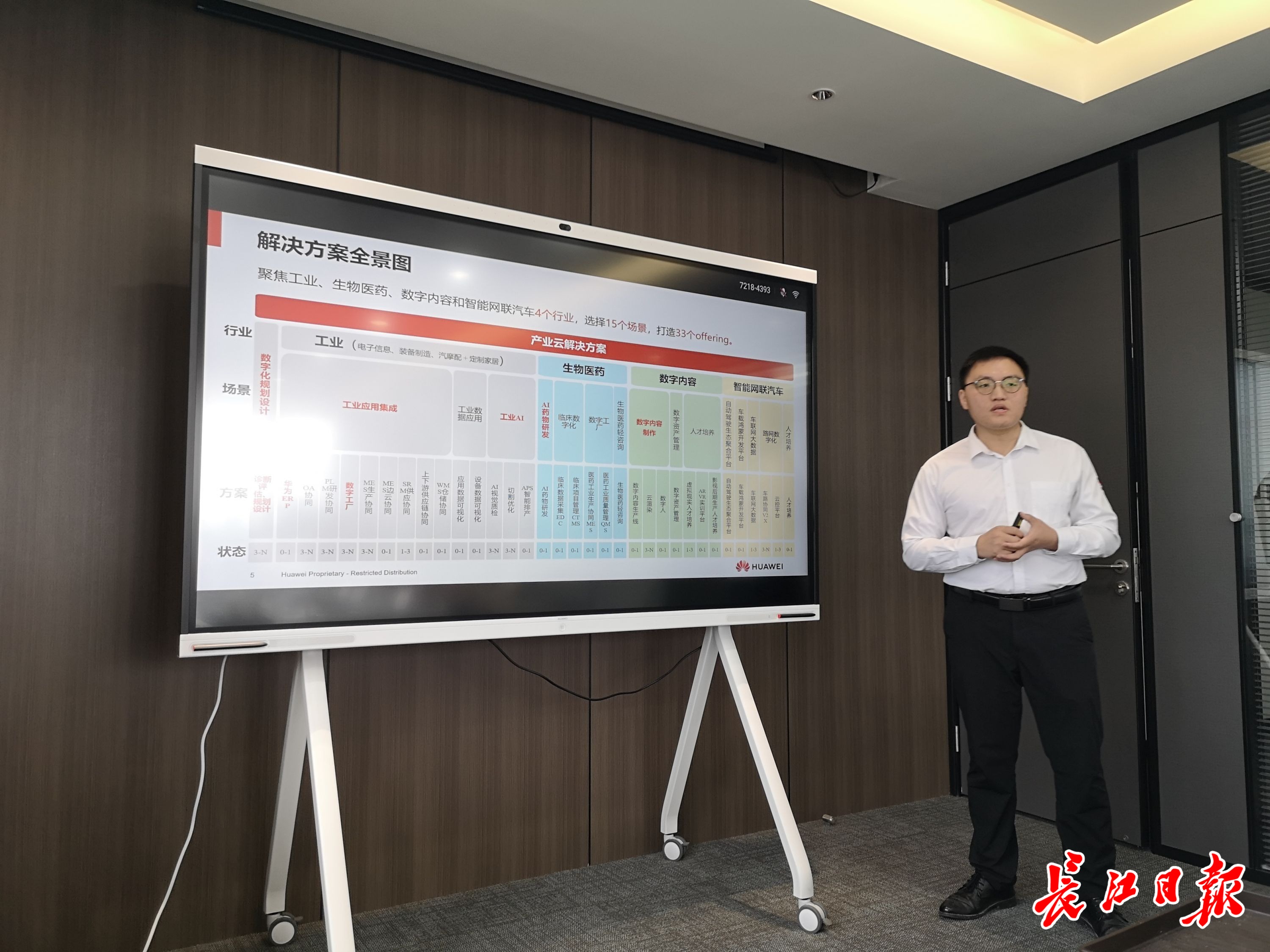 华为(武汉)人工智能创新中心向其他企业介绍自己的产品和服务。记者覃柳玮 摄