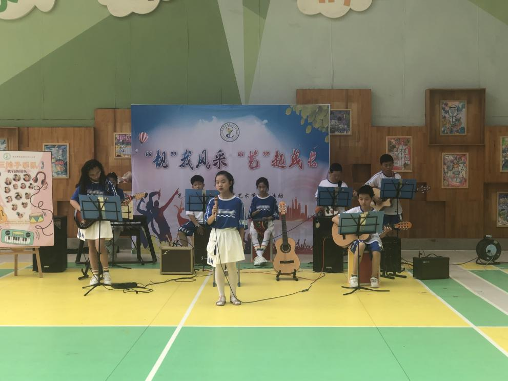 花样跳绳社团的孩子们用跳绳创编各种花式动作,最大程度地发挥学生们丰富的想象力、创造力和表现力。学校的“三拍子乐队”的表演,让全校师生都忍不住叫好。乐队指导老师王雄介绍,乐队成员大多是学校四五年级学生,他们热爱音乐、喜欢器乐、享受舞台,乐队里有酷炫的贝斯、优美的吉他、活力的键盘、热情的手鼓,“孩子们用音乐唱出心声,感受快乐”,王雄说。