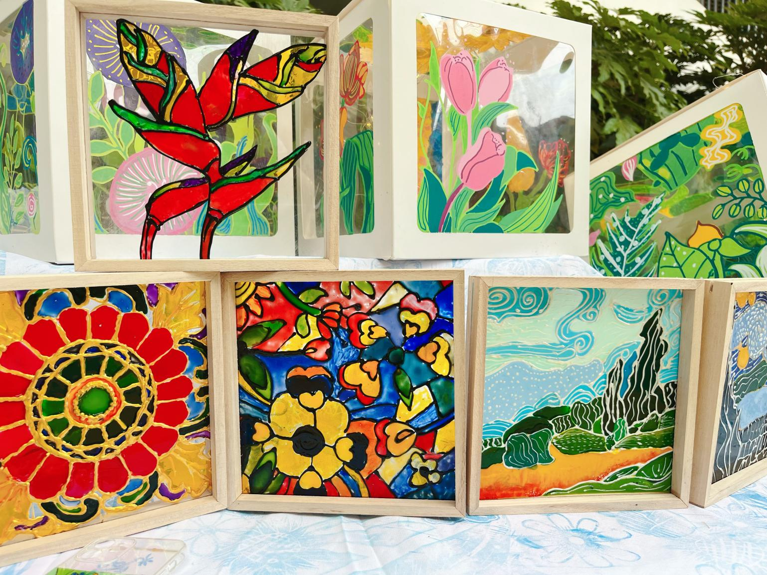 玻璃画作品展示。