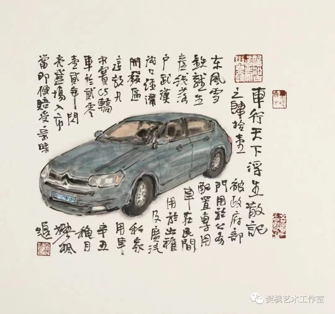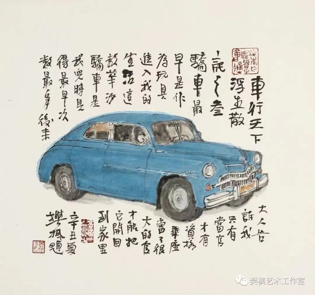 樊枫的汽车系列作品创作于今年,近日发布在“樊枫艺术工作室”微信公众号上。