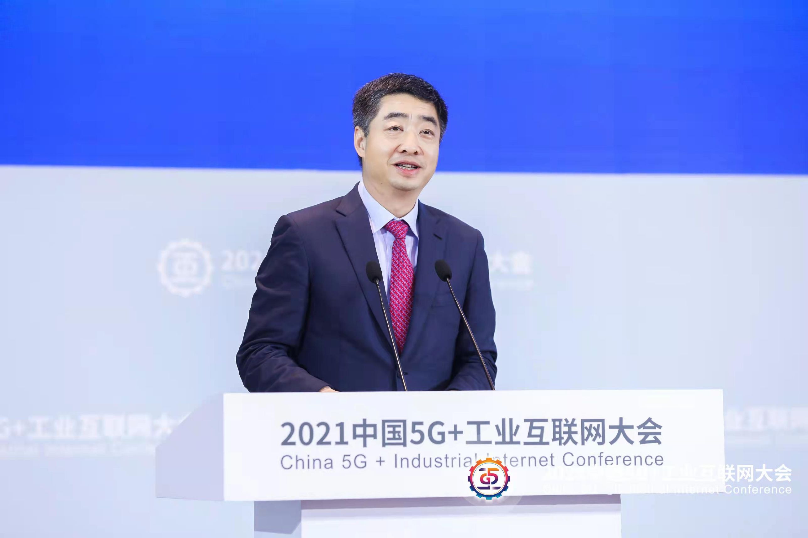 华为轮值董事长胡厚崑在中国5G+工业互联网大会上发言。