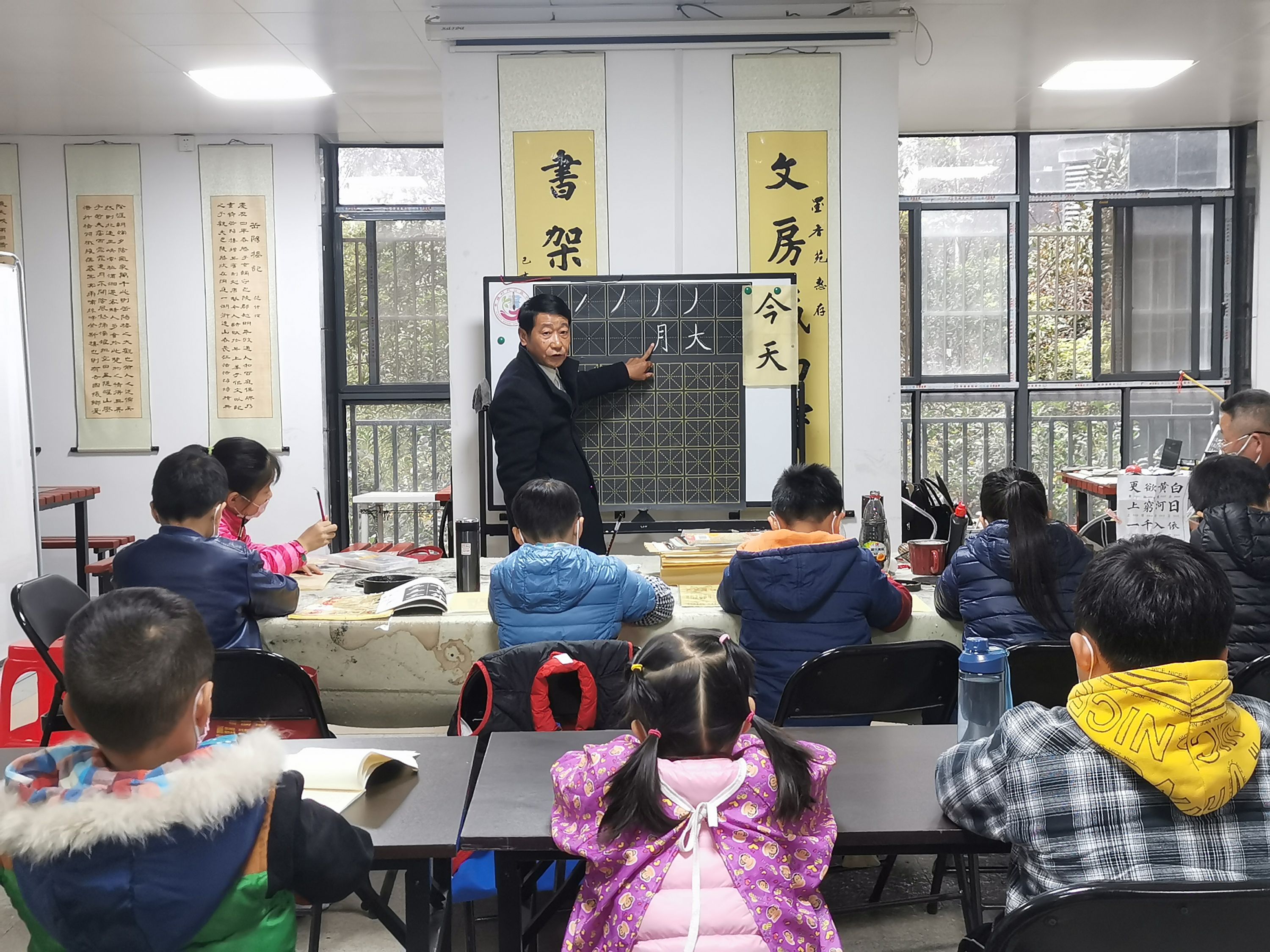 长江日报大武汉客户端讯(记者陈永权 通讯员华玲)“撇分为平撇、直撇、竖撇和斜撇,平撇要重按起笔,向左斜平出……”11月21日下午,江岸区百步亭社区幸福时代三期活动室里,武汉市书法协会会员、墨香苑公益书法志愿服务队队员朱昌明正津津有味地给台下的孩子们讲解书法课。
