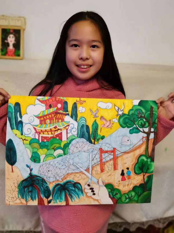来自金色麦田的童玮老师告诉记者,这次有近二十位学生参与了主题绘画。“他们以一种主人翁的姿态思考什么样的画面,更能够与观看者有互动,调动了所看所思所感,来表达他们的内心和欢喜。”不少小艺术家选择了“人与环境”的主题,向世人展现一个绿色、活力的武汉,却不乏未来主人翁的担当,畅想武汉作为一个国际大都会城市未来的城市生态更加丰富多元,人和环境和谐相处。