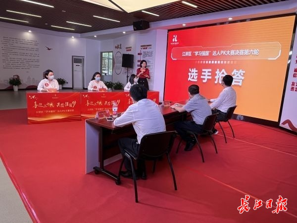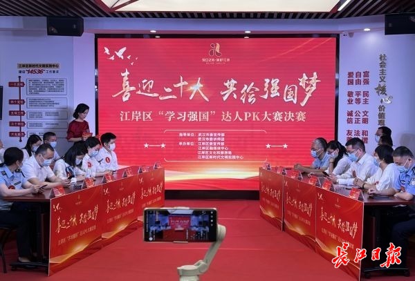 长江日报大武汉客户端6月3日讯(记者汪丽婷 通讯员陈于红)2日,江岸区举办“学习强国”达人PK大赛决赛线下活动,在江岸区新时代文明实践中心,不同年龄段的24名达人的目光锁定在同一套题上,展开对决。