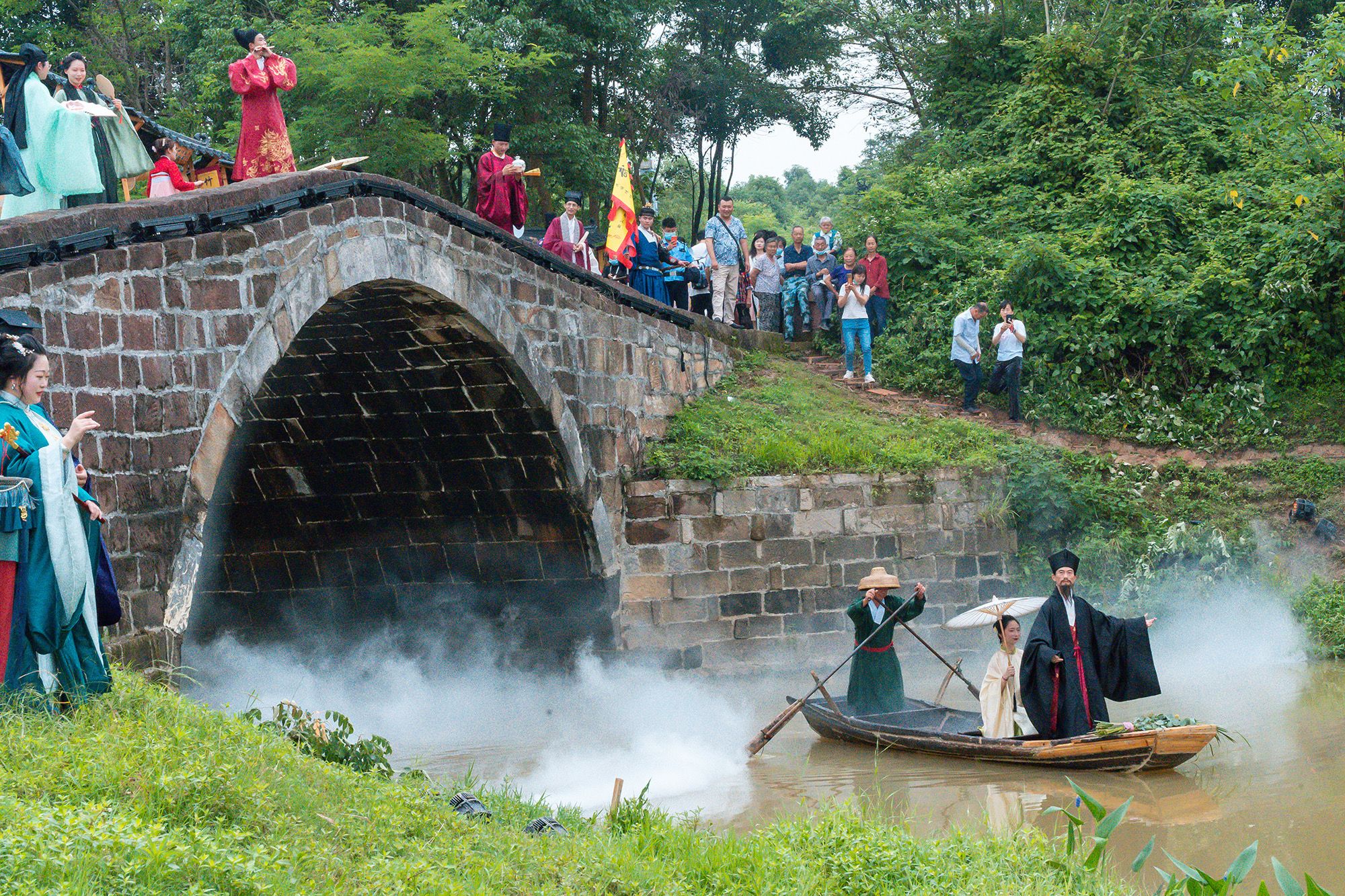 在文艺表演活动中,表演者以南桥为舞台背景,进行情景交融、跨越时空的文艺表演,通过编钟演奏、古筝合奏以及古典舞、歌伴舞和实景剧等节目,回溯南桥历史,展示了江夏人民对古桥深厚的历史情感。当地村民饶浩功自幼见证南桥存在,“从小就听村里老人讲述南桥故事,没想到今日能够得以一见,心情非常激动,希望有更多的人来了解南桥,关注南桥,保护南桥”。