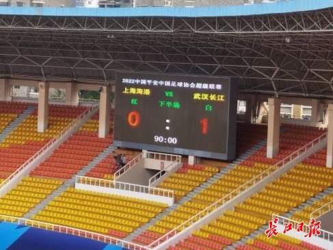 开赛前两队列队。 记者马万勇 摄于大连 长江日报大武汉客户端6月4日大连讯 (记者马万勇)在刚刚结束的2022年中超联赛首轮比赛中,武汉长江队凭借外援布鲁诺在第71分钟的头球破门,1:0击败前中超冠军上海海港,爆出了本赛季中超的第一个“冷门”。 记分牌定格了武汉长江队2022中超联赛的首场胜利。记者马万勇 摄于大连 【编辑:丁翾】