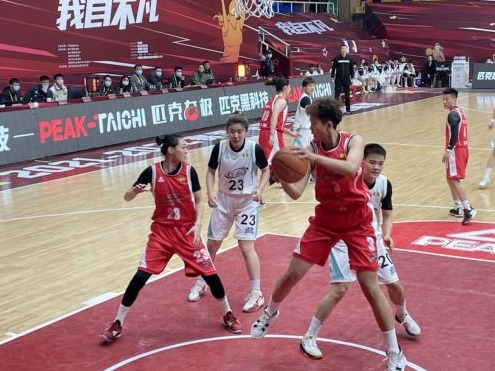 盛帆女篮球员与对手争抢篮板球。(通讯员王凡供图)