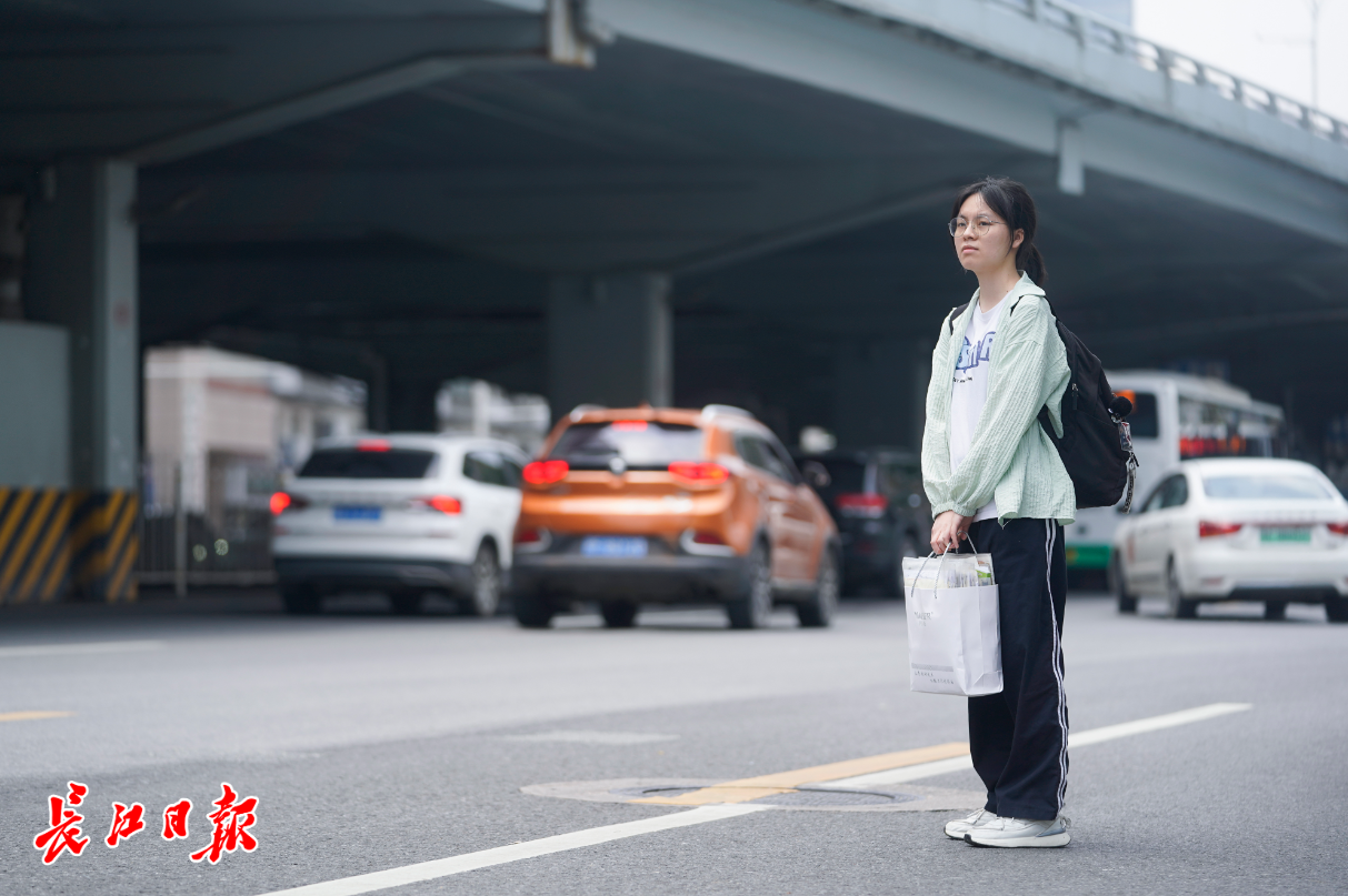 6月5日中午,郑璐离开学校,在解放大道上等出租车。记者彭年 摄
