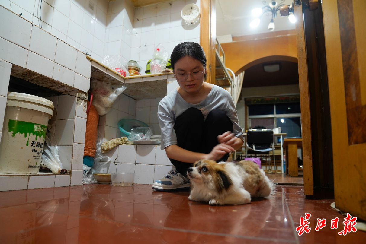 郑璐在家照顾小狗。记者彭年 摄