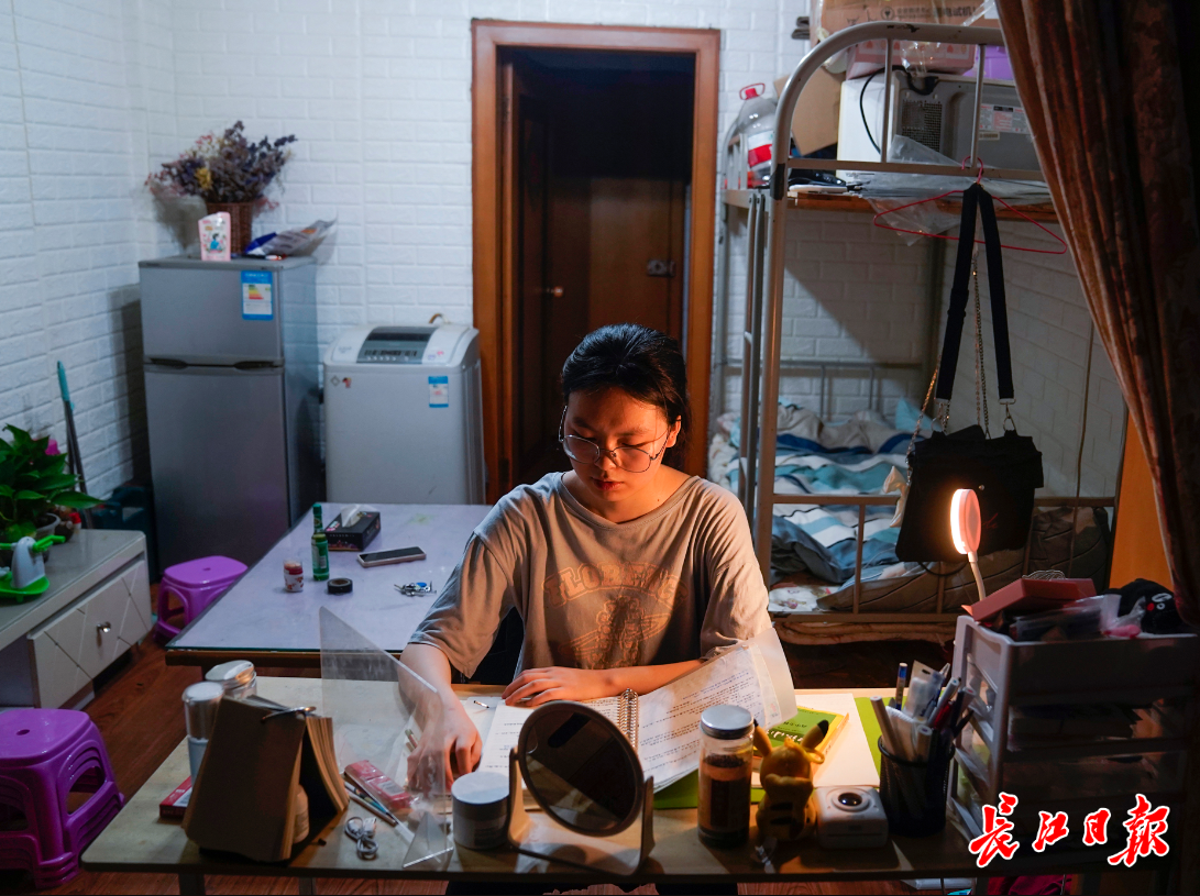 6月3日晚,放学后的郑璐在出租屋里复习功课。记者彭年 摄