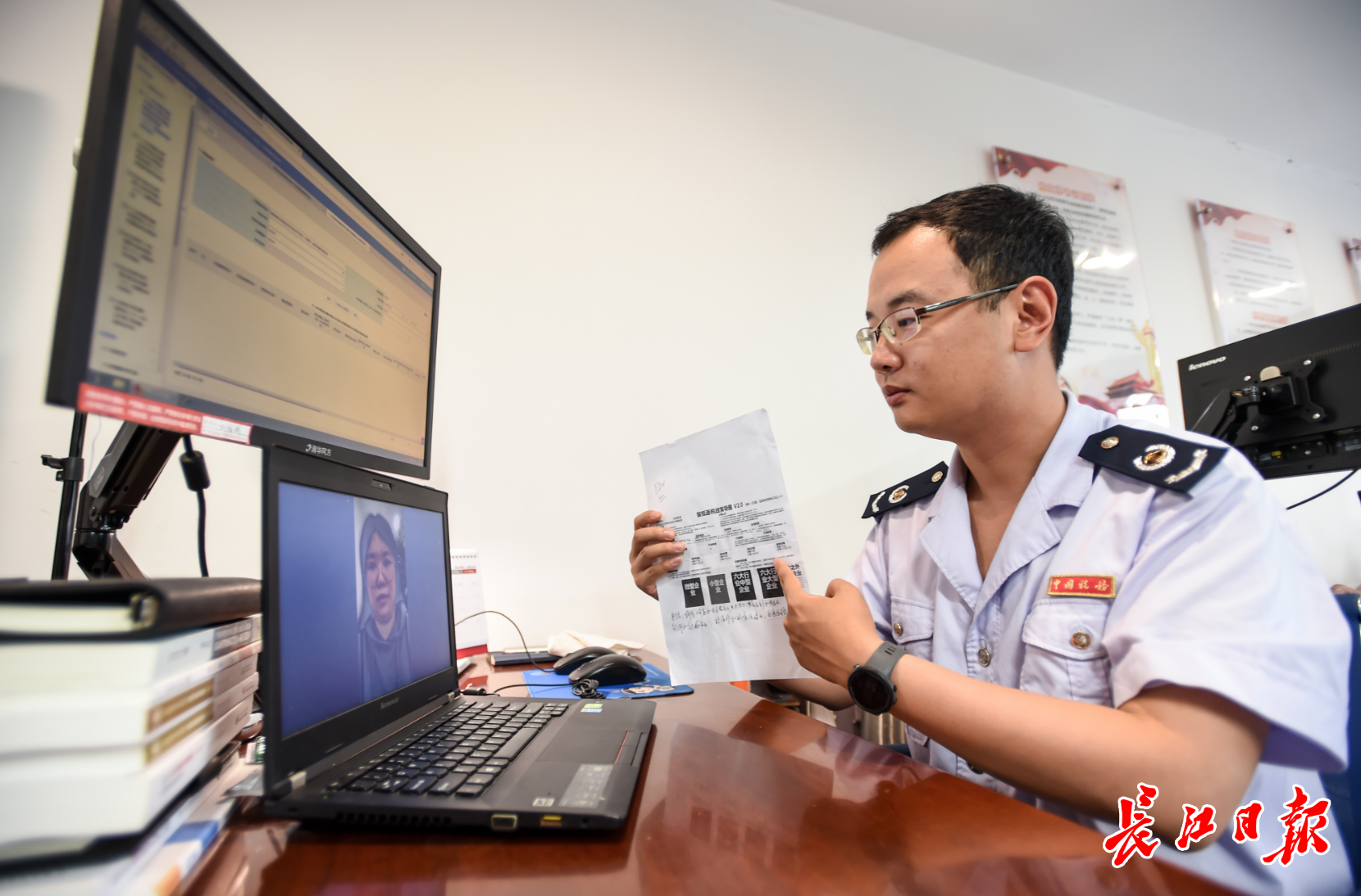 武汉经开区税务局“税收直通车”服务团队成员刘祖斌线上辅导企业办理出口退税业务。记者许魏巍 摄