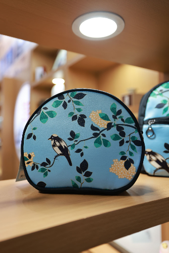 浙江省博物馆带来富有浙江特色的文化产品。有“十里红妆女儿梦,福缔良缘佳偶成”为灵感的十里红妆系列文创,包括茶具套装、丝巾、蜡烛、拖鞋等;有以浙江省博物馆馆藏王意亭仿古仕女图册为主题的系列产品,图案截取画中仕女不同情态,辅以花鸟小景装饰,有折扇、手工香皂、耳坠、书签等,凸显雅致秀丽格调,古韵与时尚相结合。