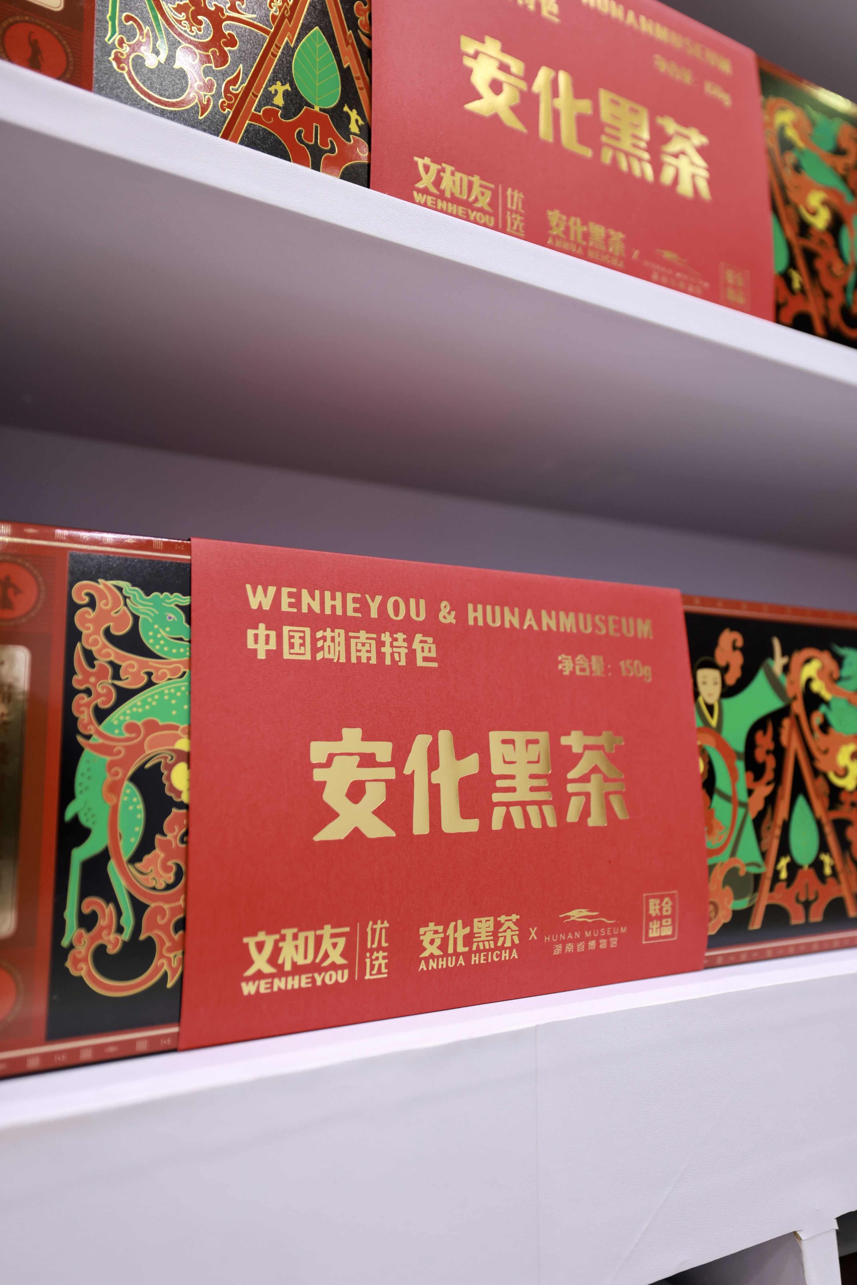 “千年湖湘 湘博有礼”,湖南省博物馆带来湖南特色安化黑茶,马卡龙色的包装为博物馆增添了现代活力气息。