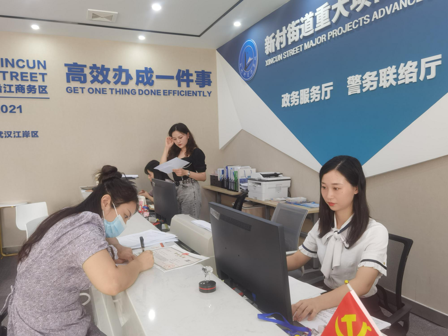 在江岸区新村街道重大项目推进服务中心,经办人员惊叹这里的办事效率:在提交了相关资料后,当天就领取了营业执照和公章。