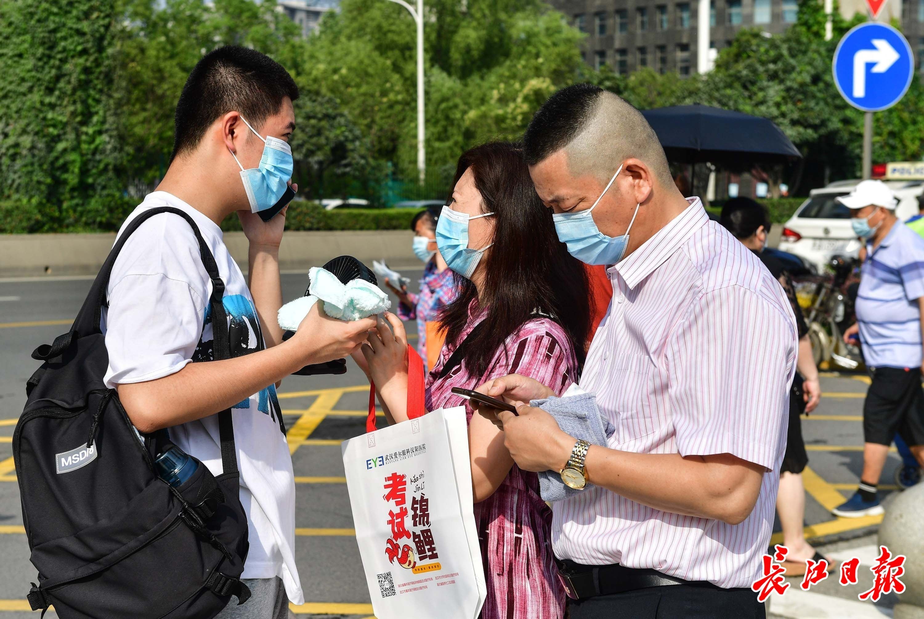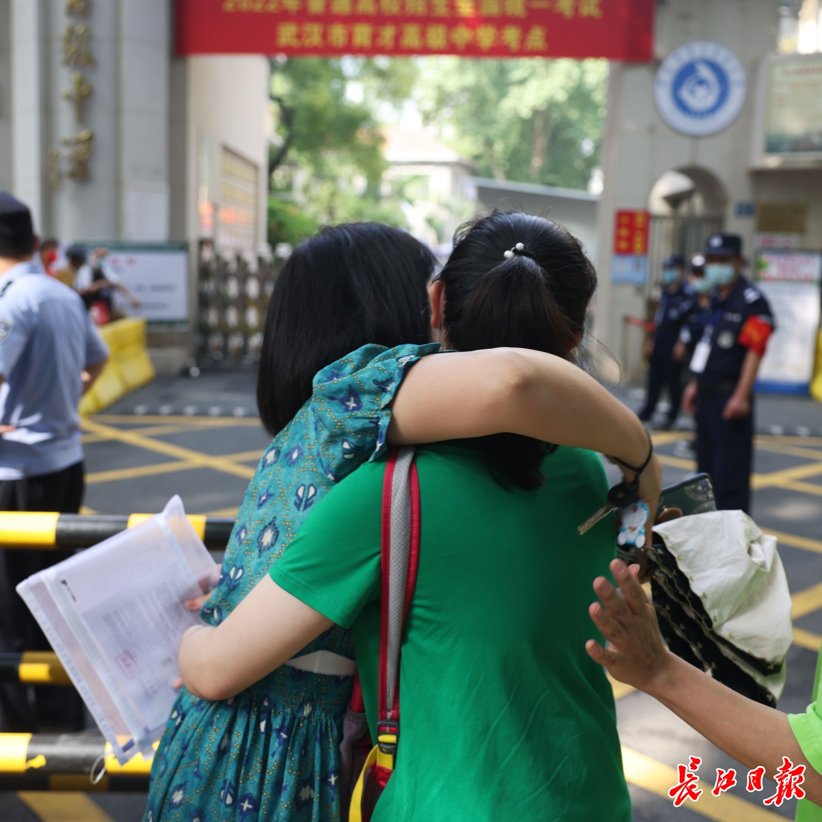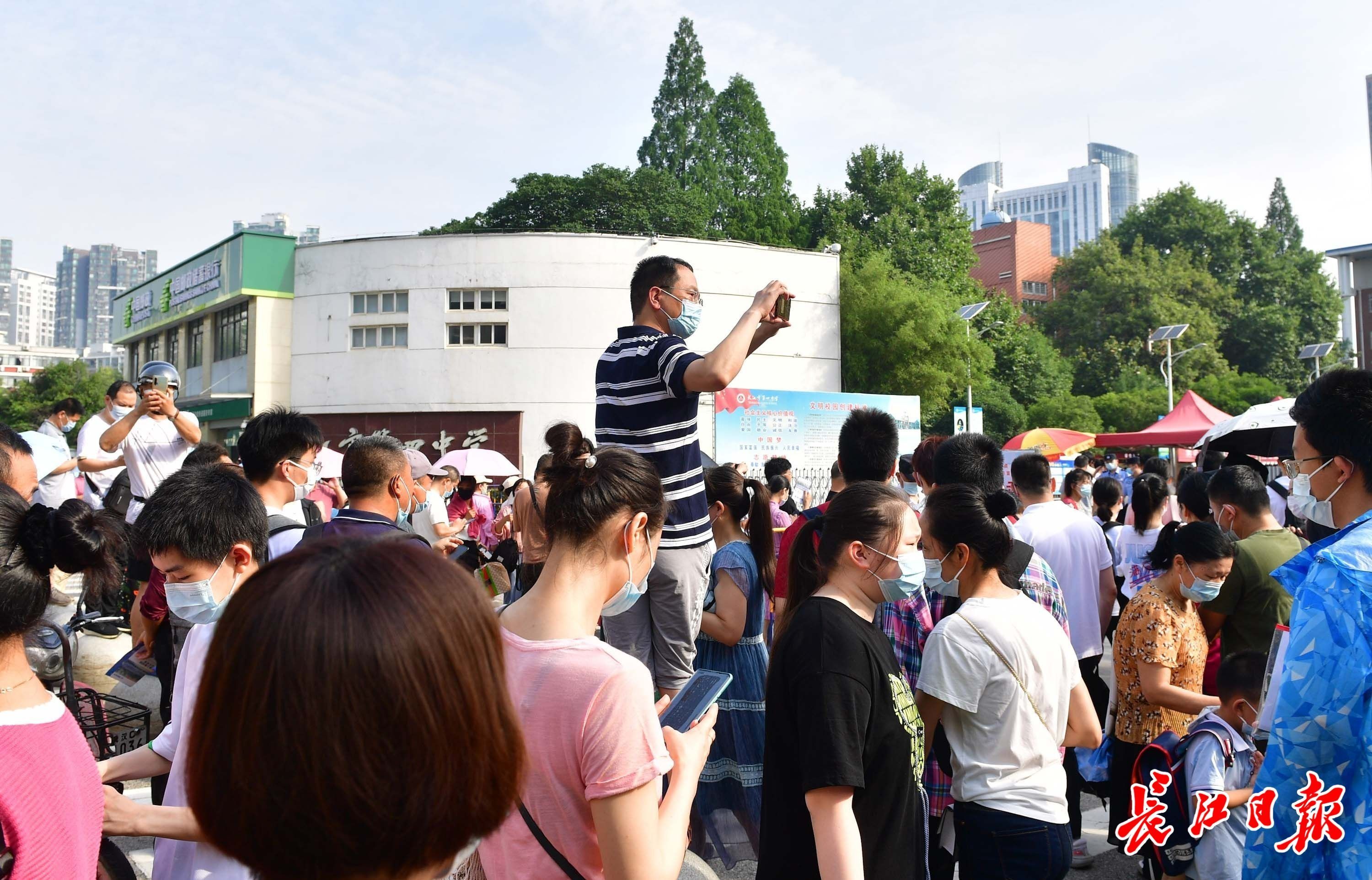 6月7日高考首日,上午8时,在武汉一中、武汉四中、育才高中和关山中学考点外,家长和老师们送考生进入考场。