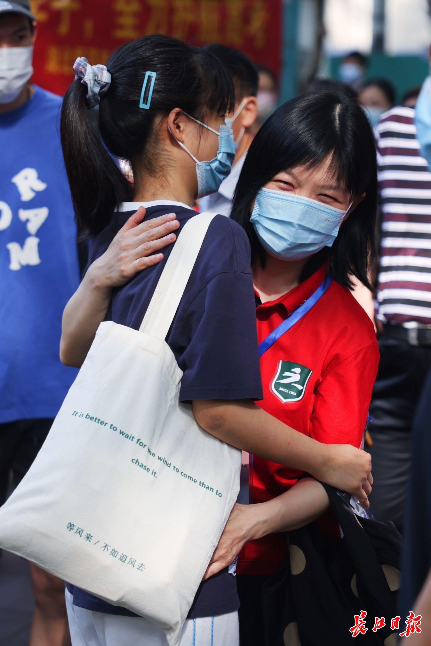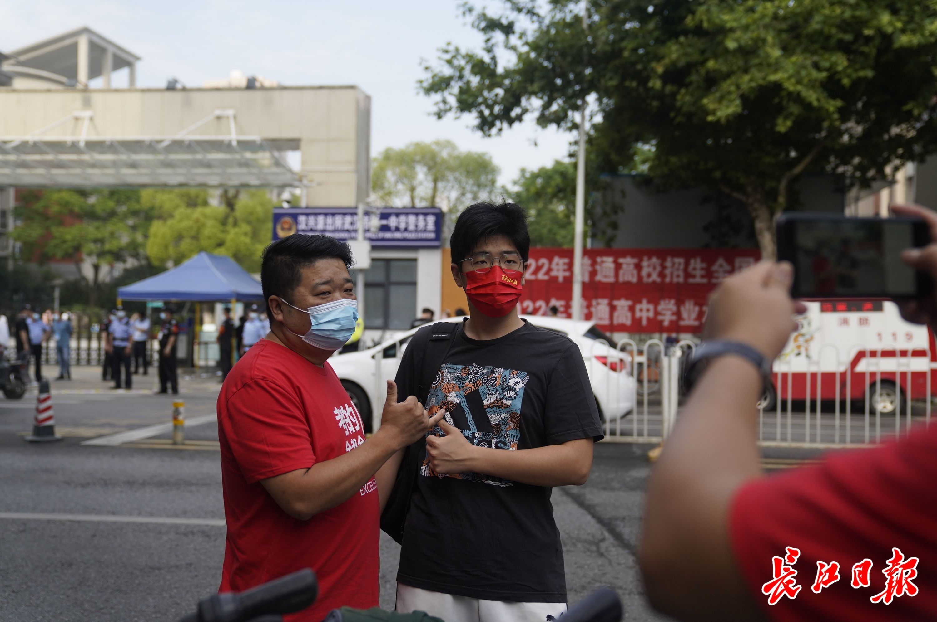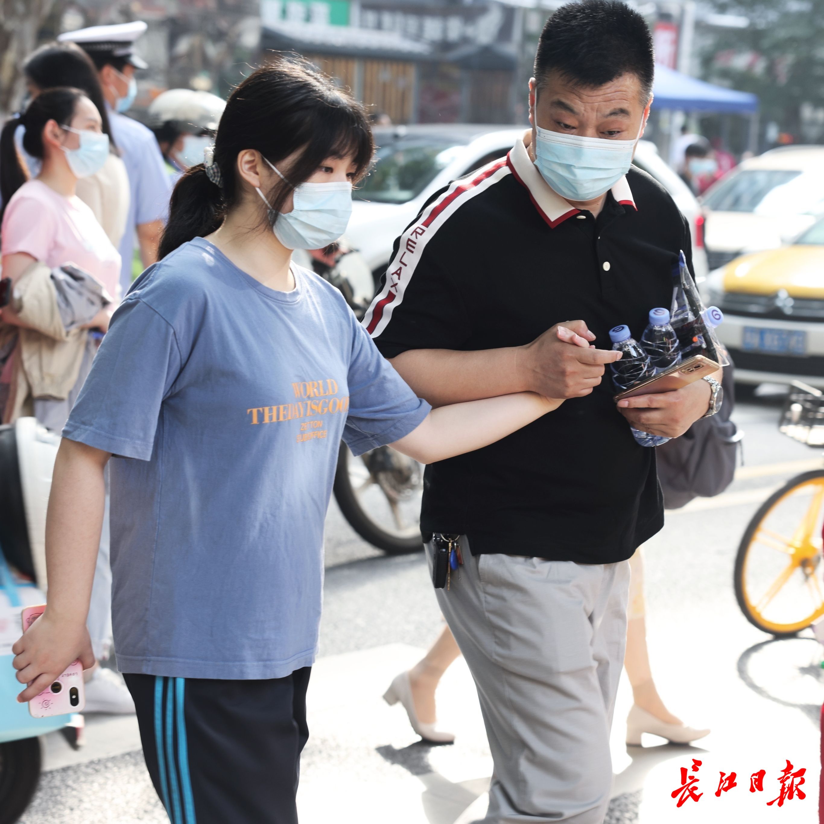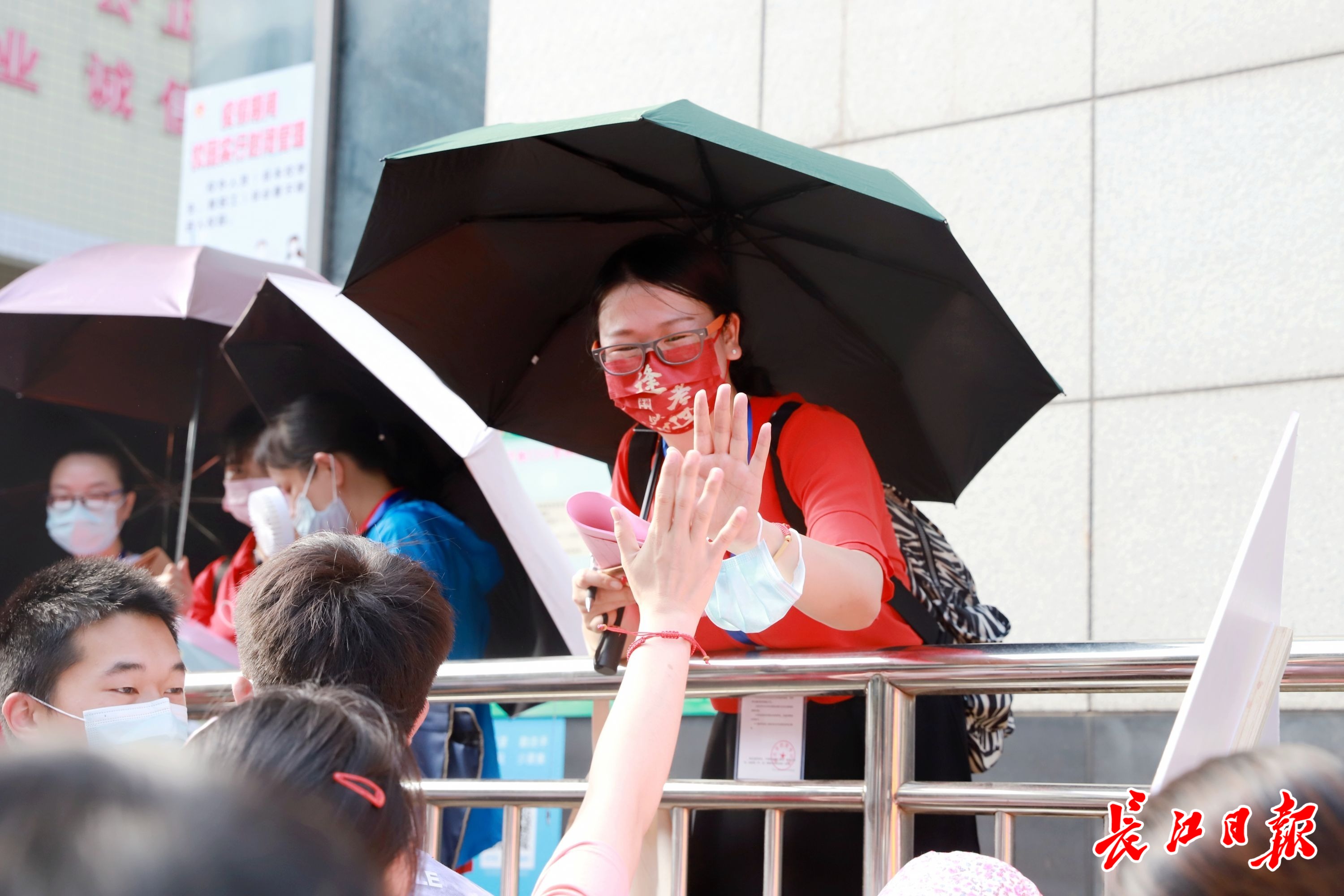 6月7日高考首日,上午8时,在武汉一中、武汉四中、育才高中和关山中学考点外,家长和老师们送考生进入考场。