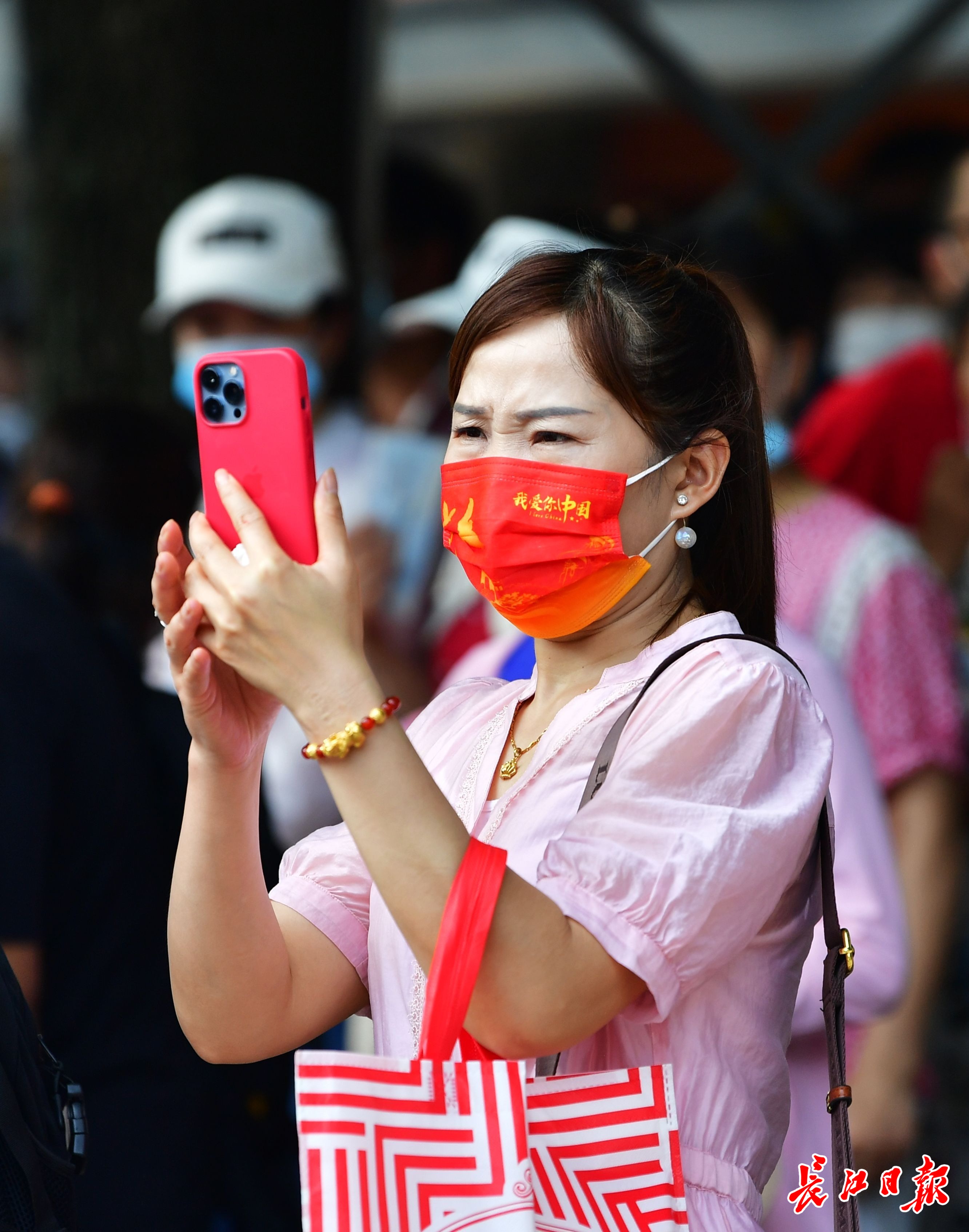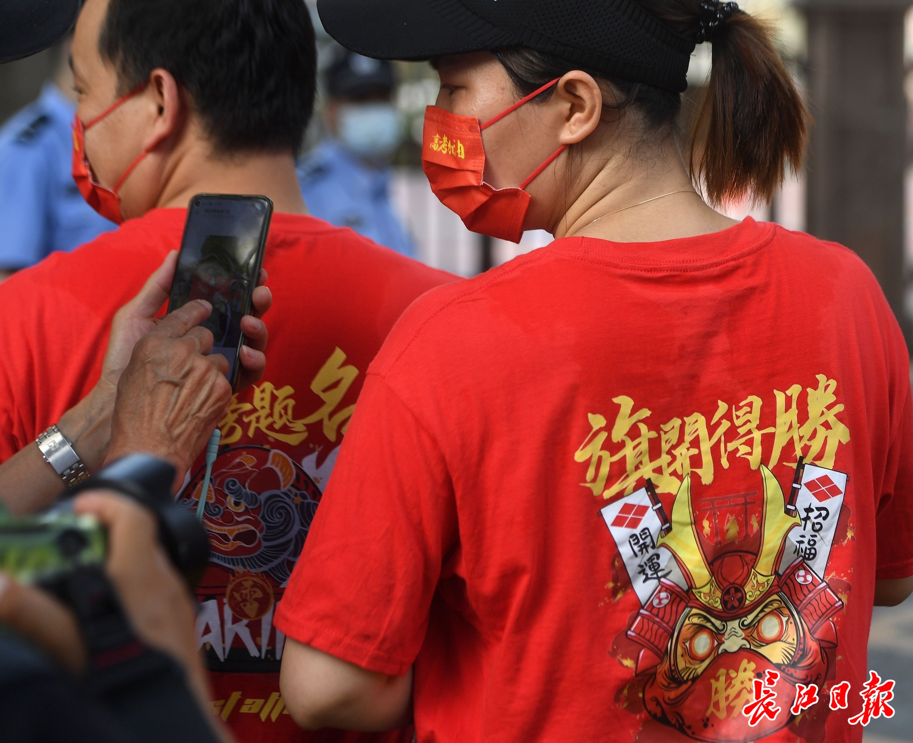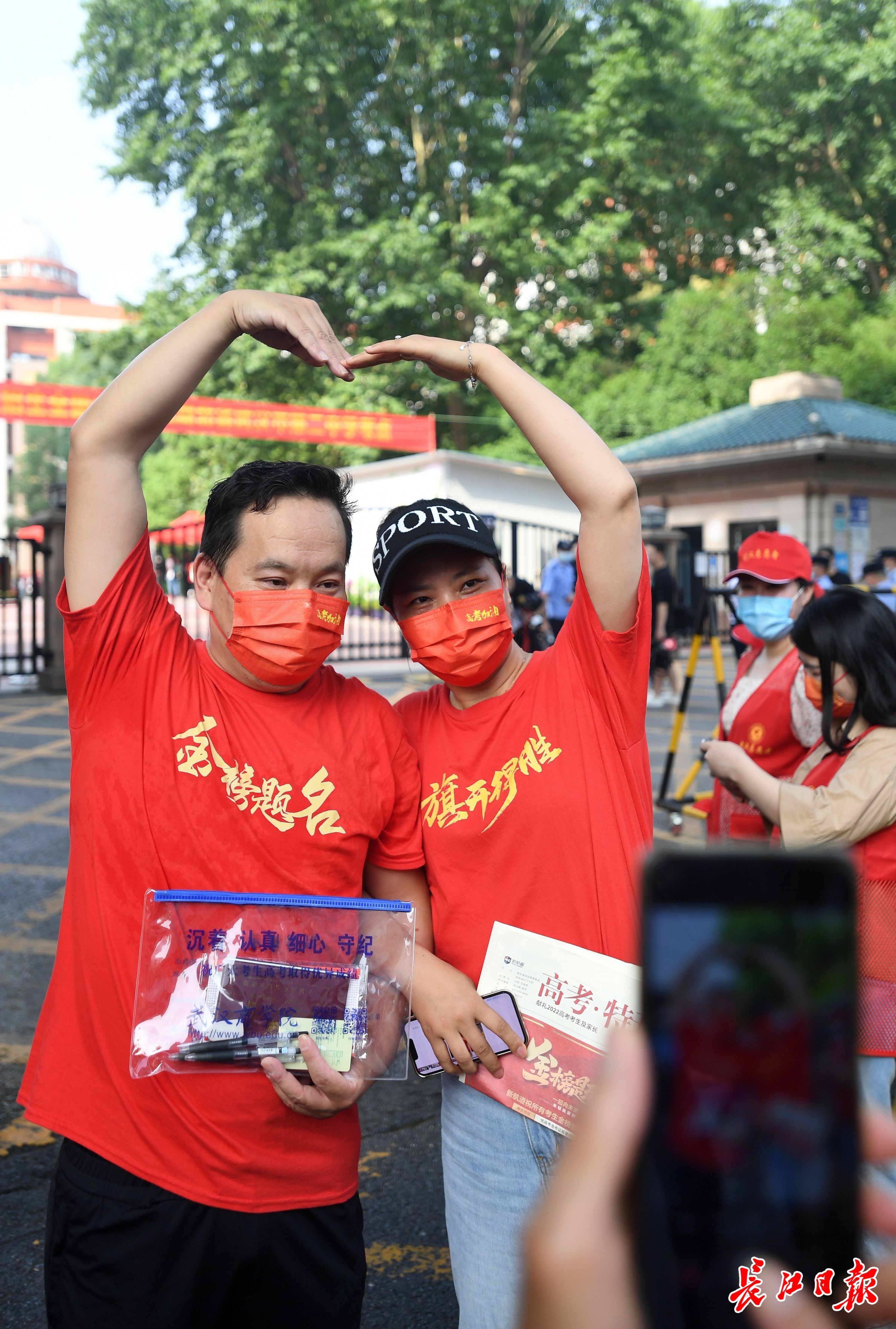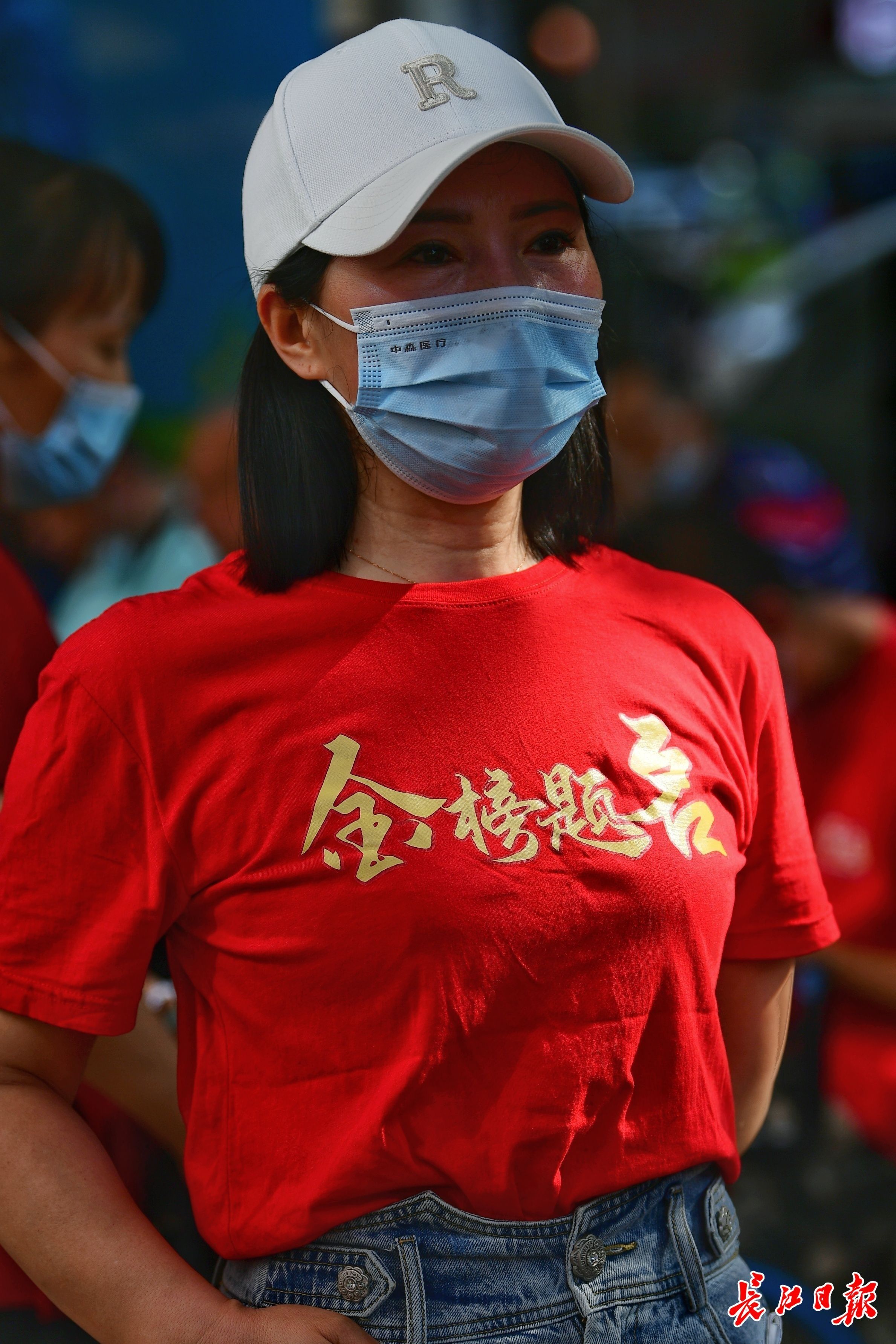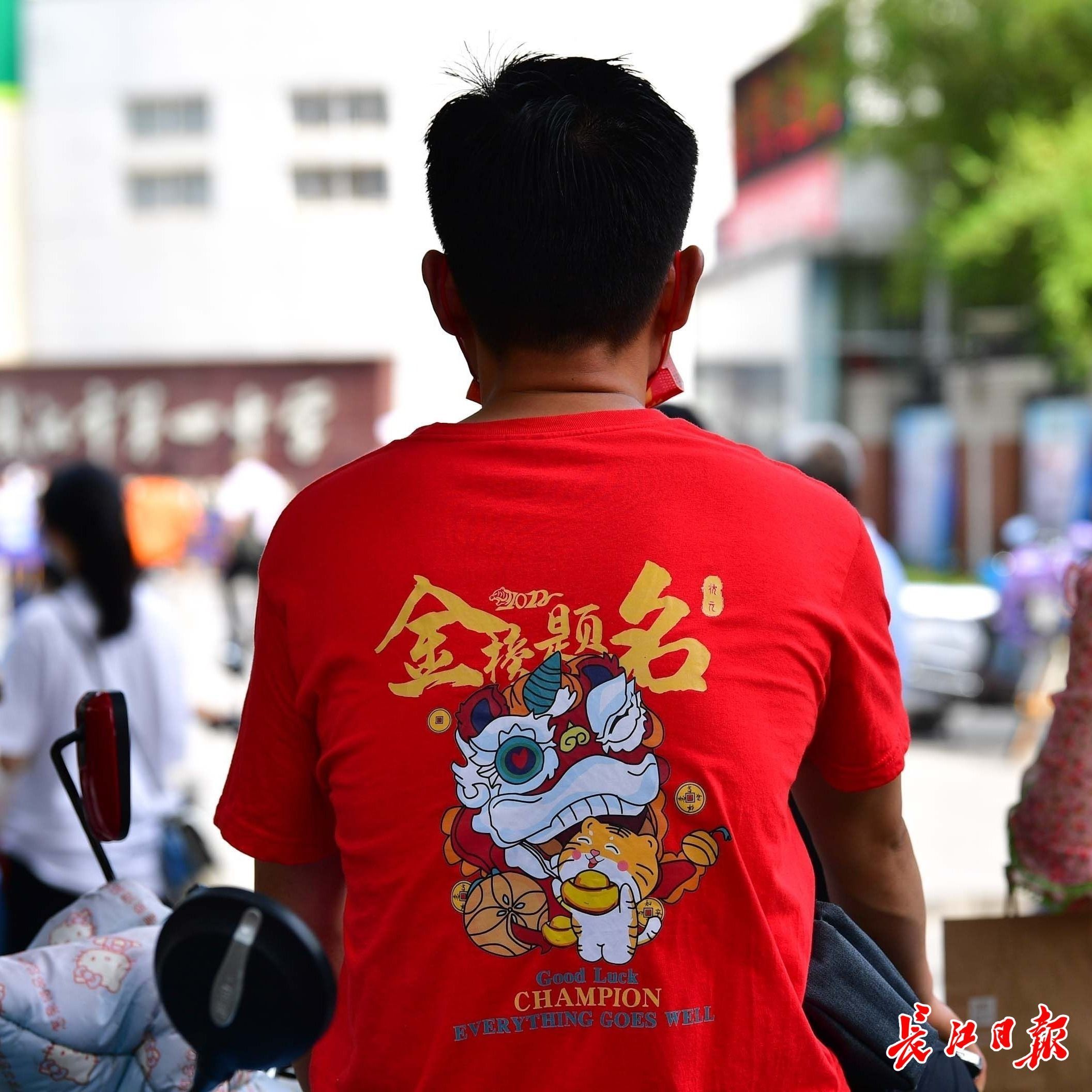 6月7日,高考首日,武汉市第二中学、武汉市第四中学、武汉市第十一中学和吴家山中学考点,送考家长戴着各种印有祝福的口罩,穿着印有祝福标语的服装,给孩子加油鼓劲,祝福他们高考取得好成绩。