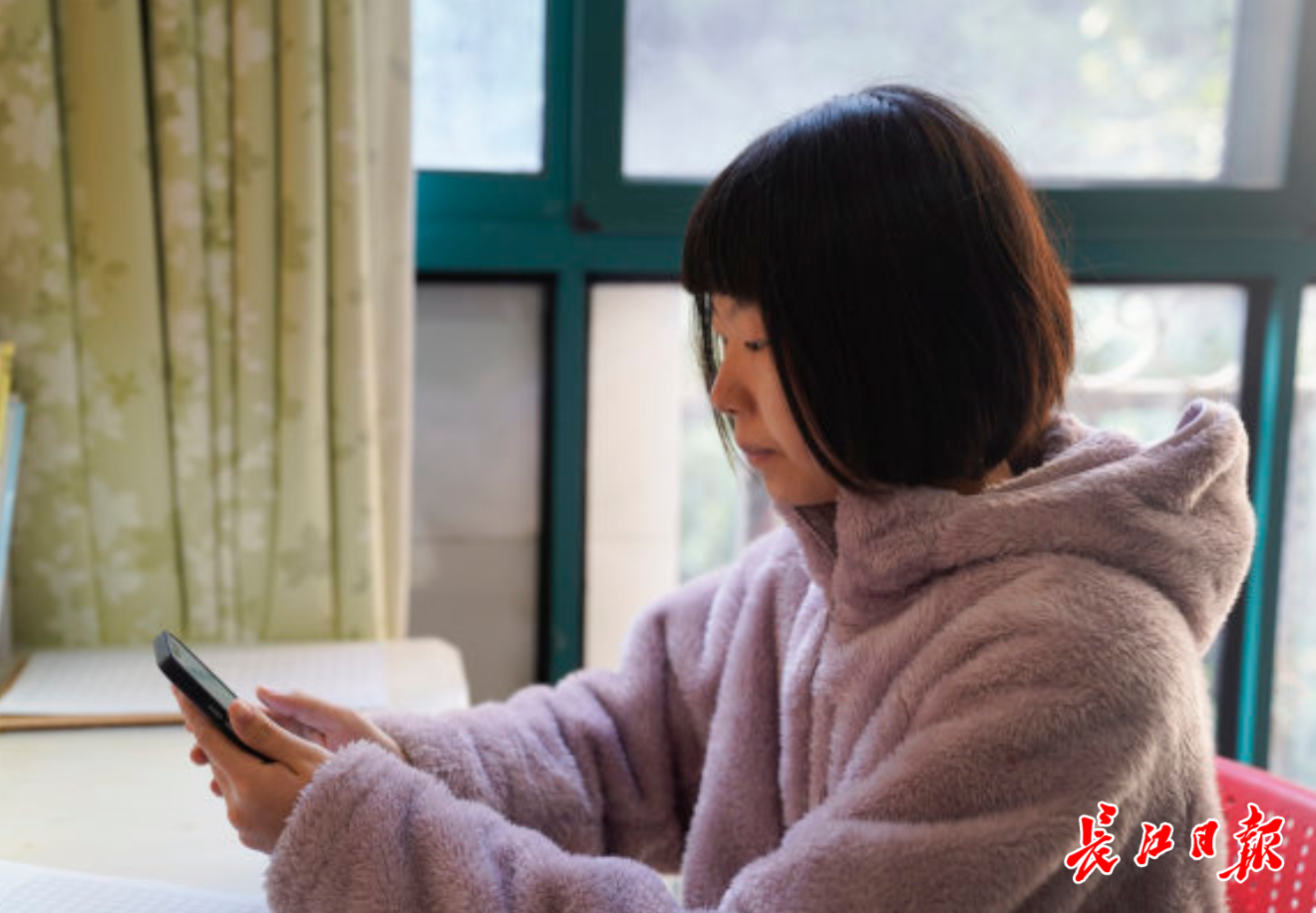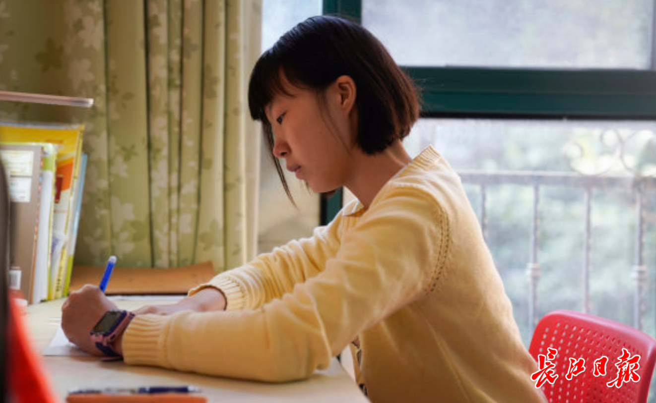 学生郭恩希在家中安静的写作文。记者彭年摄