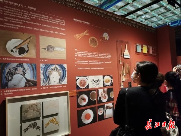 观众在故宫敦煌联合大展中了解壁画的制作过程。记者柯立 摄