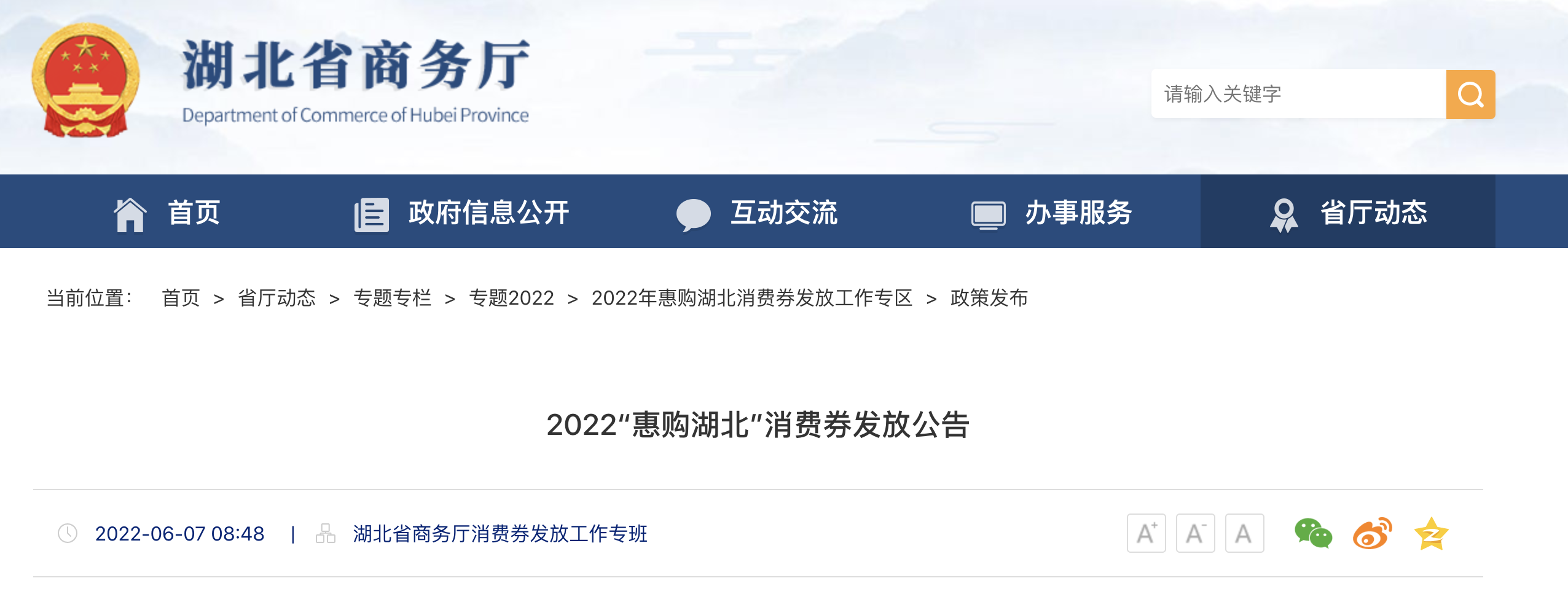 湖北省商务厅发布