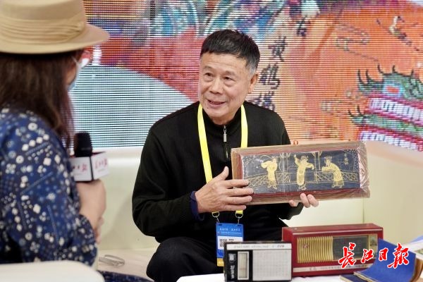 长江日报大武汉客户端讯(记者周满珍)“非遗”是首届中国(武汉)文化旅游博览会的热门,不少市民热衷逛“非遗”展位,淘相关文创产品。长江日报展厅内的“武汉非遗,一直精彩”直播活动也吸引不少市民驻足,直播3天吸引超百万网友观看。28日,木兰传说传承人叶蔚璋、黄鹤楼传说传承人姜普林做客直播间,分享“非遗”魅力。