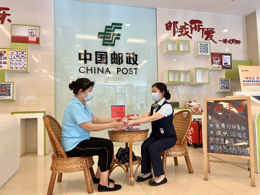 6月7日至6月9日高考期间,武汉市邮政分公司在全市网点设立高考“加邮”驿站,提供贴心的公益助考服务,为广大考生和家长创造舒适的候考环境。