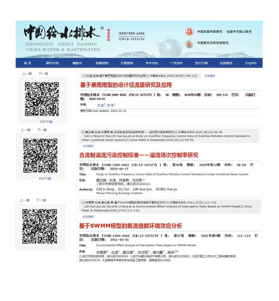 最终,研究团队将《合流制溢流污染控制标准——溢流场次控制率研究》、《基于暴雨雨型的设计径流量研究及应用》、《溢流污染水质水量设计模型》研究成果,在《中国给水排水》杂志上发表。其中,《基于暴雨雨型的设计径流量研究及应用》创新成果,其核心技术属国内外首创。