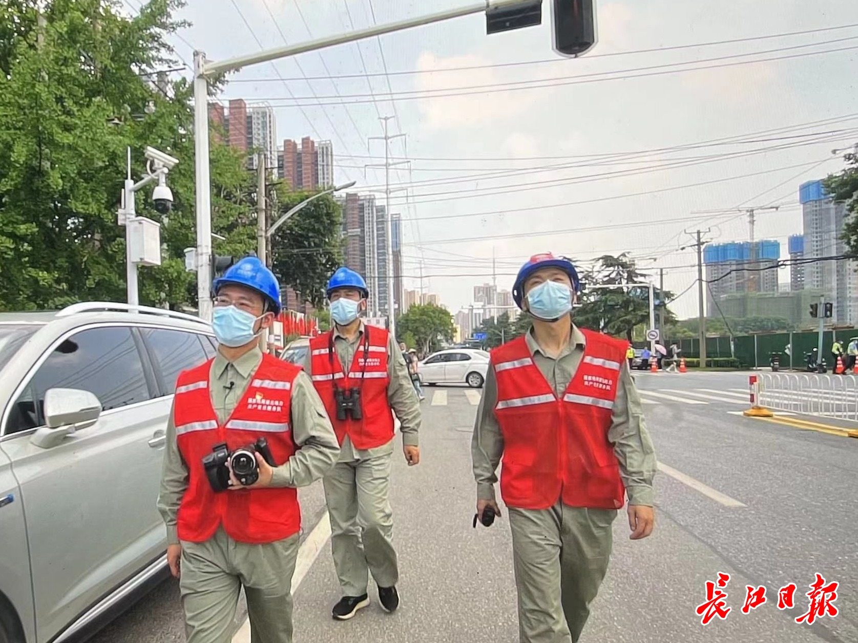 长江日报大武汉客户端6月9日讯(记者梁爽 通讯员王欣)2022年高考如期而至,6月7日,在位于武汉市青山区的武钢三中高考考点门口,王攀正与同事对110千伏洲建线和110千伏洲建一回线进行仔细巡视,确保高考保电线路安全稳定运行,为考生保电护航。