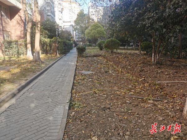 11月30日,长江日报记者在该小区看到,一块100多平方米的水泥地面刚完成硬化,能停放10余辆汽车,一侧还遗留有一处绿地,新栽种了灌木和乔木。