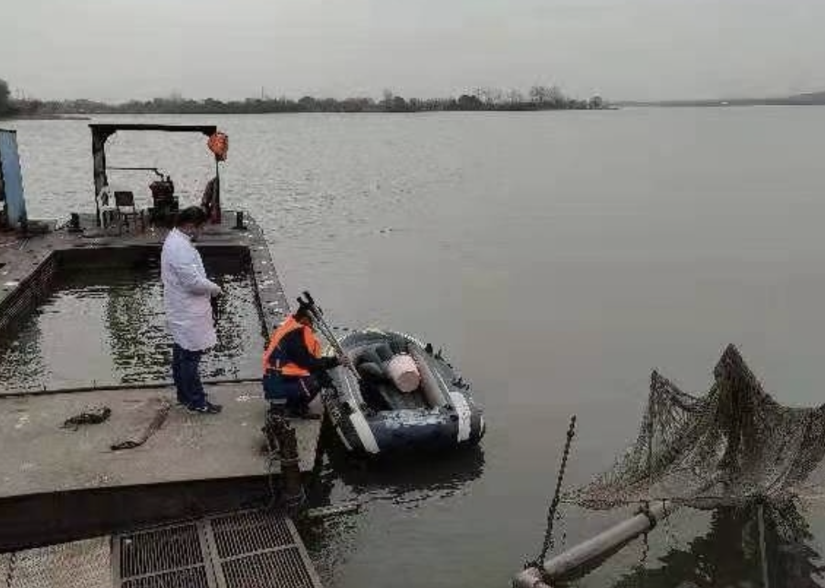 生态环境监测人员在检测严西湖水质。通讯员涂慧琴 供图
