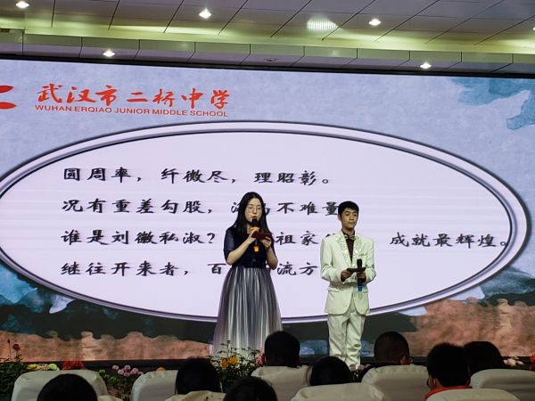 近日,武汉市二桥中学知音校区“数海撷英”声色故事会总决赛开锣。来自七年级的同学们按照抽签顺序,选取课本上不同的数学知识章节,融合语文、历史的学科特点,用小品、相声、演讲的方式登台表演。前期,每个班先从各学习小组准备的节目中进行评审,选定班上同学公认的最好的一个表演节目参加总决赛。