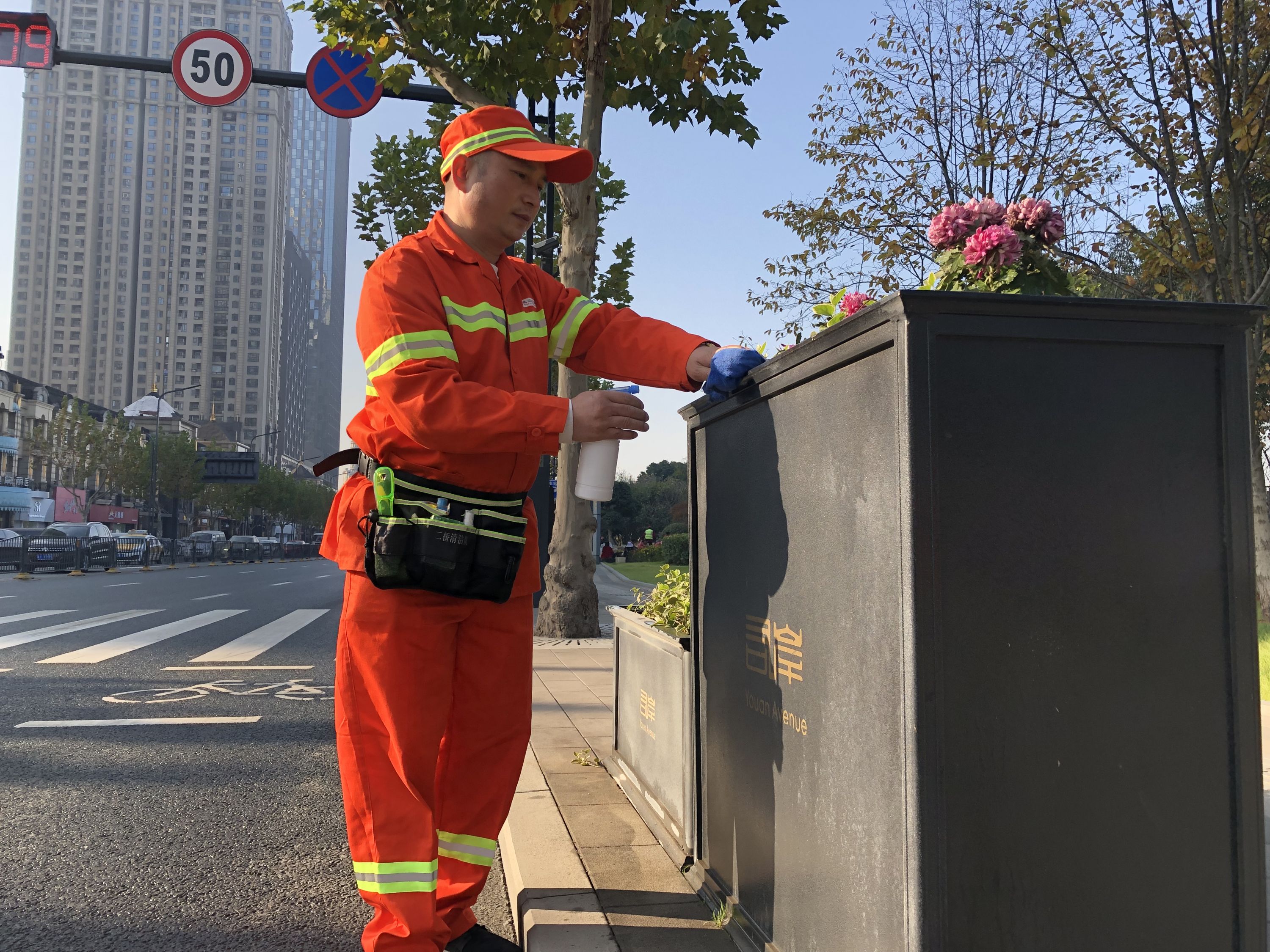 据介绍,范建华是二桥清洁队精细化保洁班的班长,他平时最喜欢琢磨的就是如何改进工作,把环卫工作做到极致。城市家具上如头发丝细小的胶带印迹、清理“牛皮癣”后比指甲盖还小的“疤痕”、果皮箱内胆残留的污渍等,都会被他发现并进行处置。