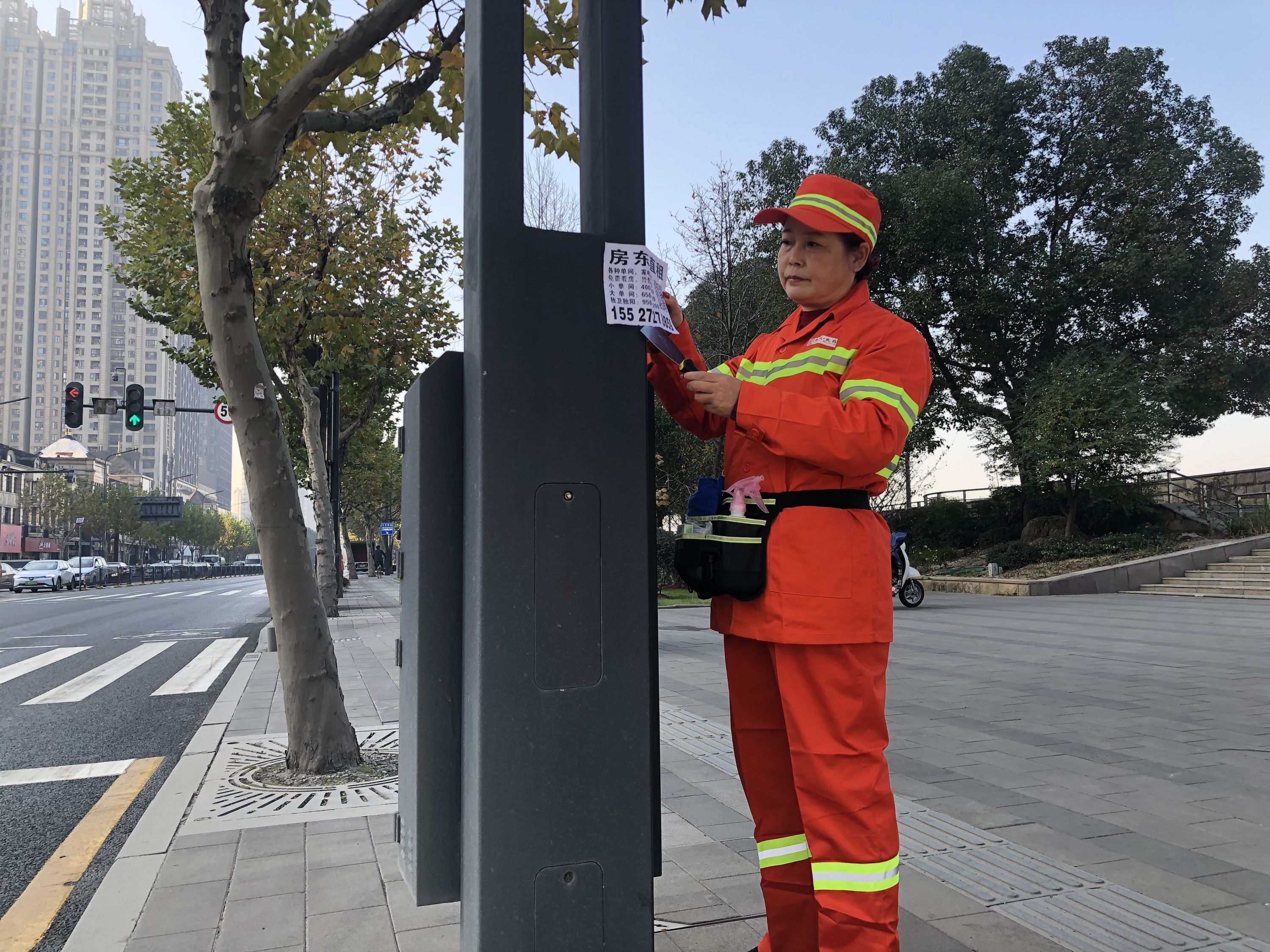 环卫师傅铲除小广告。通讯员 覃小玲 摄