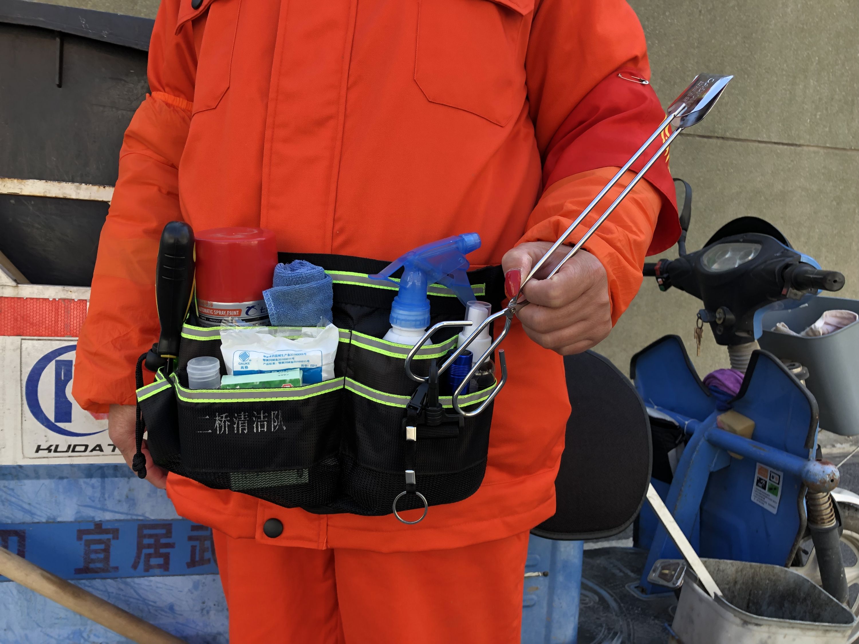 12月6日,长江日报记者从城管部门获悉,这款“清洁包”背后,是武昌区城管局二桥清洁队精致保洁能手范建华“研发”的。
