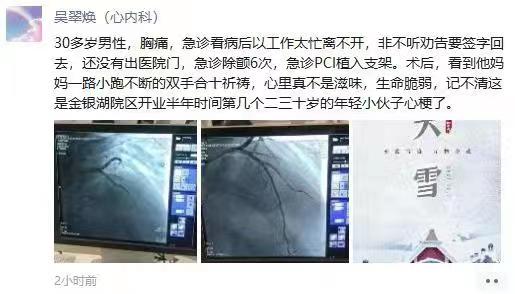 协和医院金银湖院区专家提醒大家:这是院区开业半年来抢救成功的第8例年轻心梗患者。急性心肌梗死并不是只有老年人易发,年轻人,尤其是年轻男性也要对自己的身体情况足够重视。