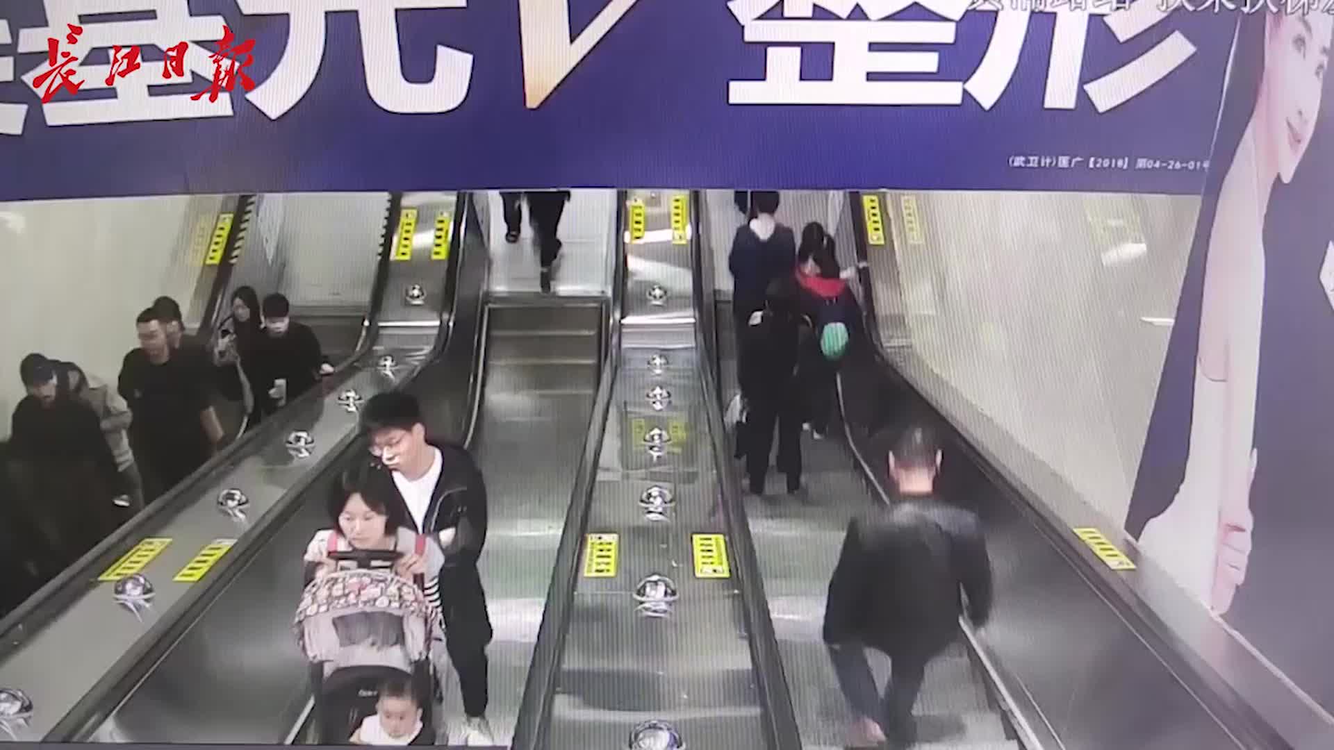 长江日报融媒体4月27日讯 “轰隆隆……”伴随巨响,一个大行李箱从手扶电梯上滚下来。只见一位黑衣男子迅速转身,逆行三步一把截住行李箱,避免其撞上旁边女乘客。前后不过7秒,瞬间转危为安。