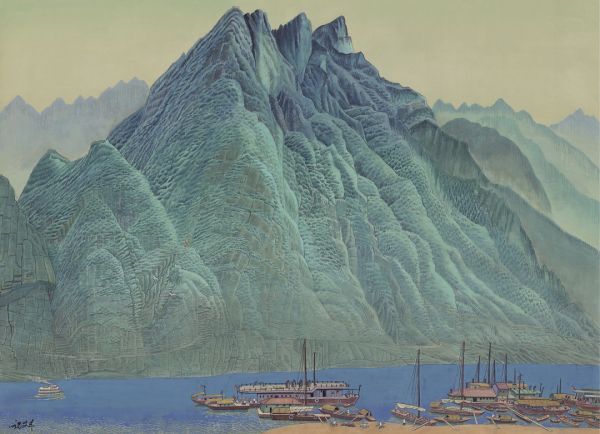 祝大年1973年创作的工笔重彩画长江三峡《夔门》,尺寸111×154cm。