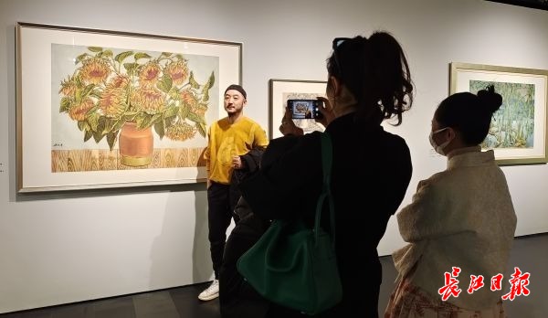 观众在祝大年作品前留影。驻京记者柯立 摄