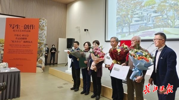 当天,“写生•创作:祝大年艺术作品展”开幕式同时举行。清华大学为祝大年家属颁发捐赠证书,并宣布:为纪念祝大年先生的绘画成就,清华艺博将8号展厅冠名为“祝大年厅”。
