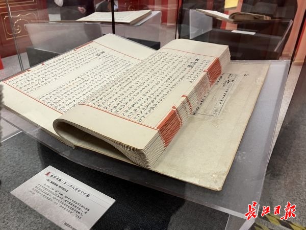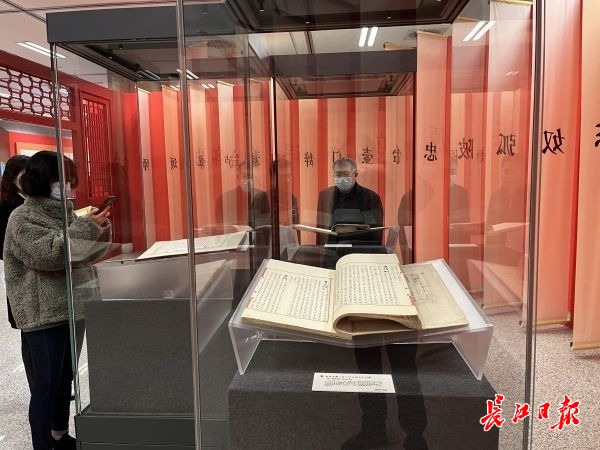 湖北省图书馆展厅陈列的3册《永乐大典》原件。记者万建辉 摄