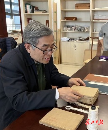 国家图书馆古籍“御医”张平在湖北图书馆培训青年古籍修复师。记者万建辉 摄