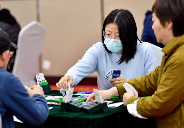 武汉全民健身运动会桥牌比赛为公开团体赛,可以男女混合组队,来自江岸区、江汉区、硚口区等城区的众多高手报名参赛。瞿红今年58岁,是武汉市20世纪80年代第一批玩桥牌的女子队员,曾代表湖北武汉多次参加全国比赛。她笑着说:“桥牌是一项智力和团队运动。”