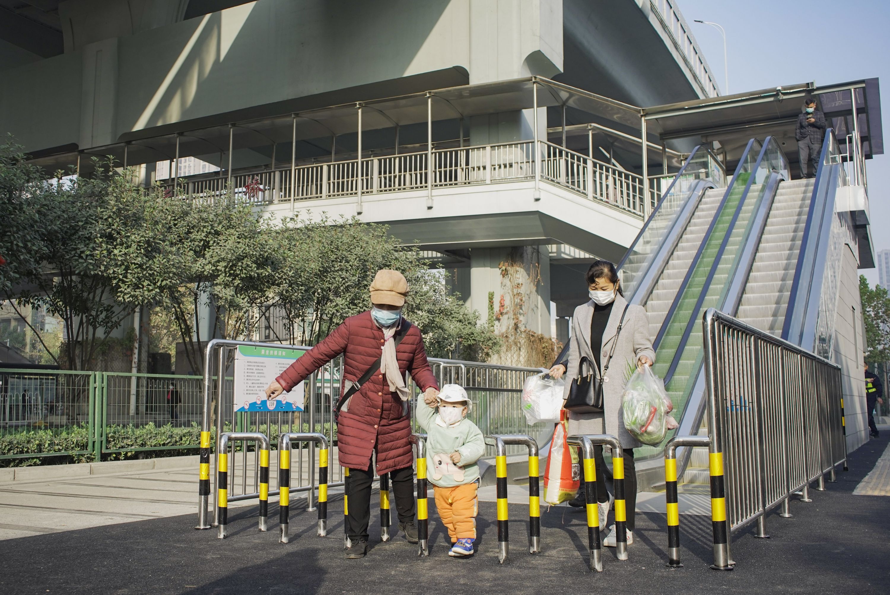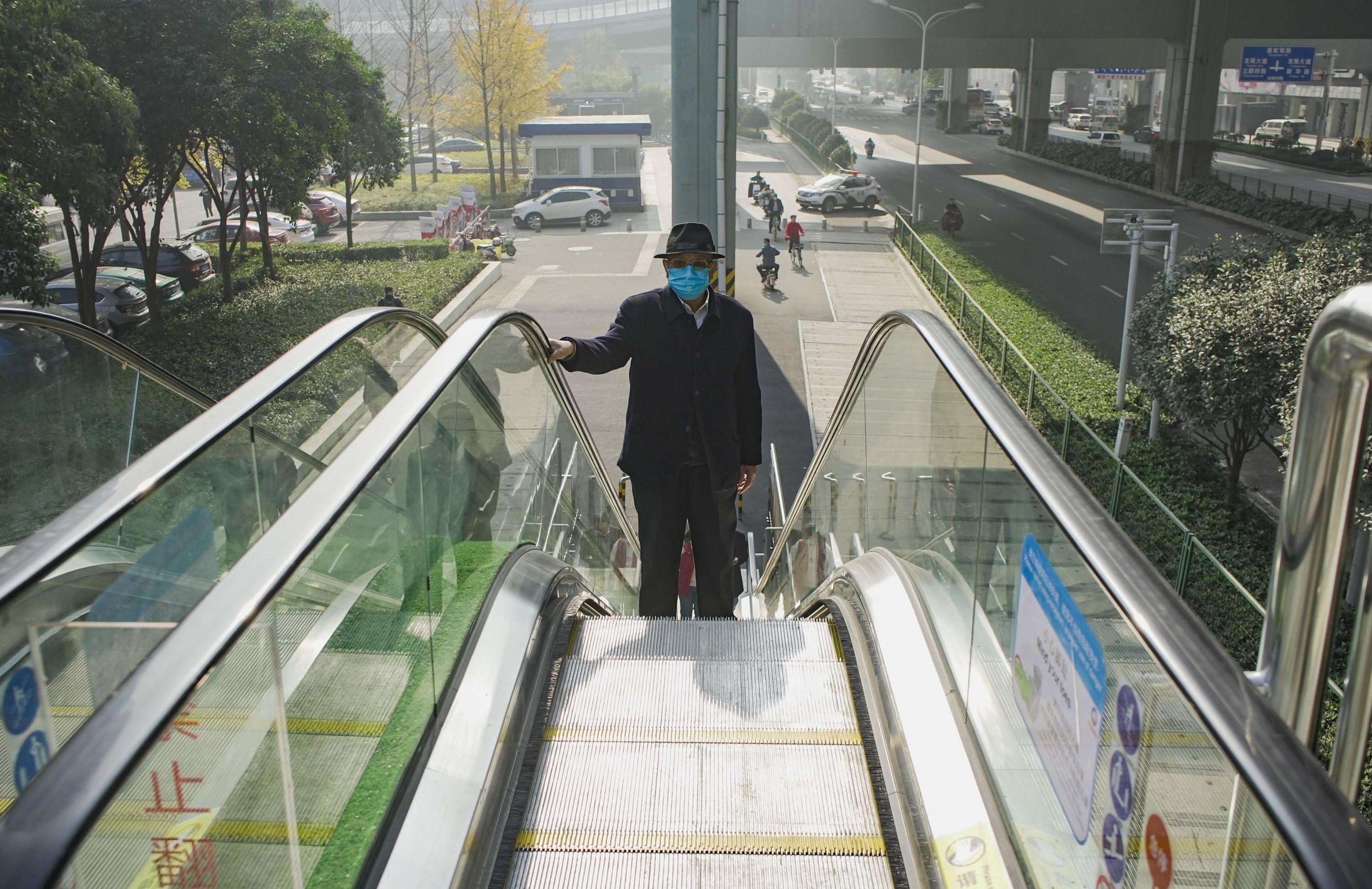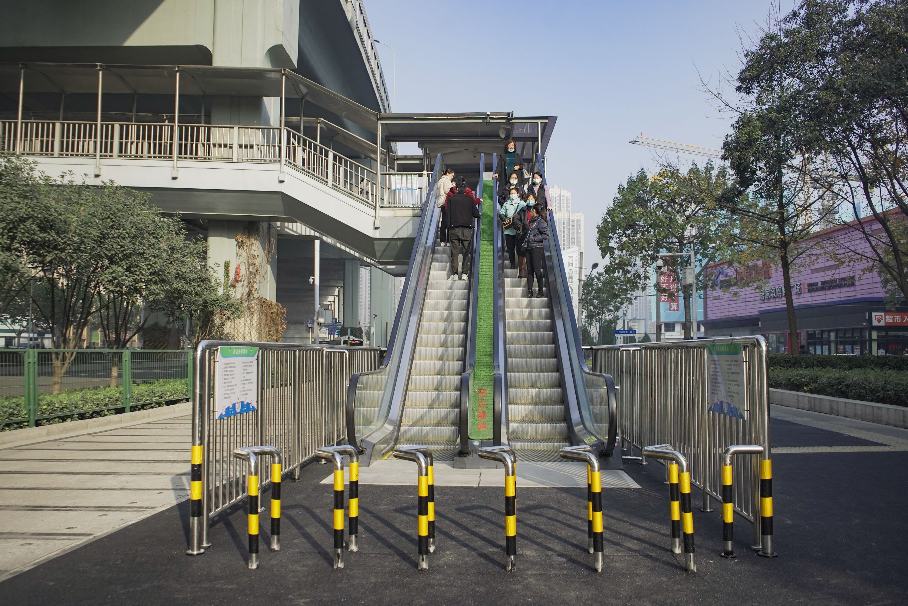 唐家墩路八古墩人行天桥自动扶梯启用。通讯员李军摄