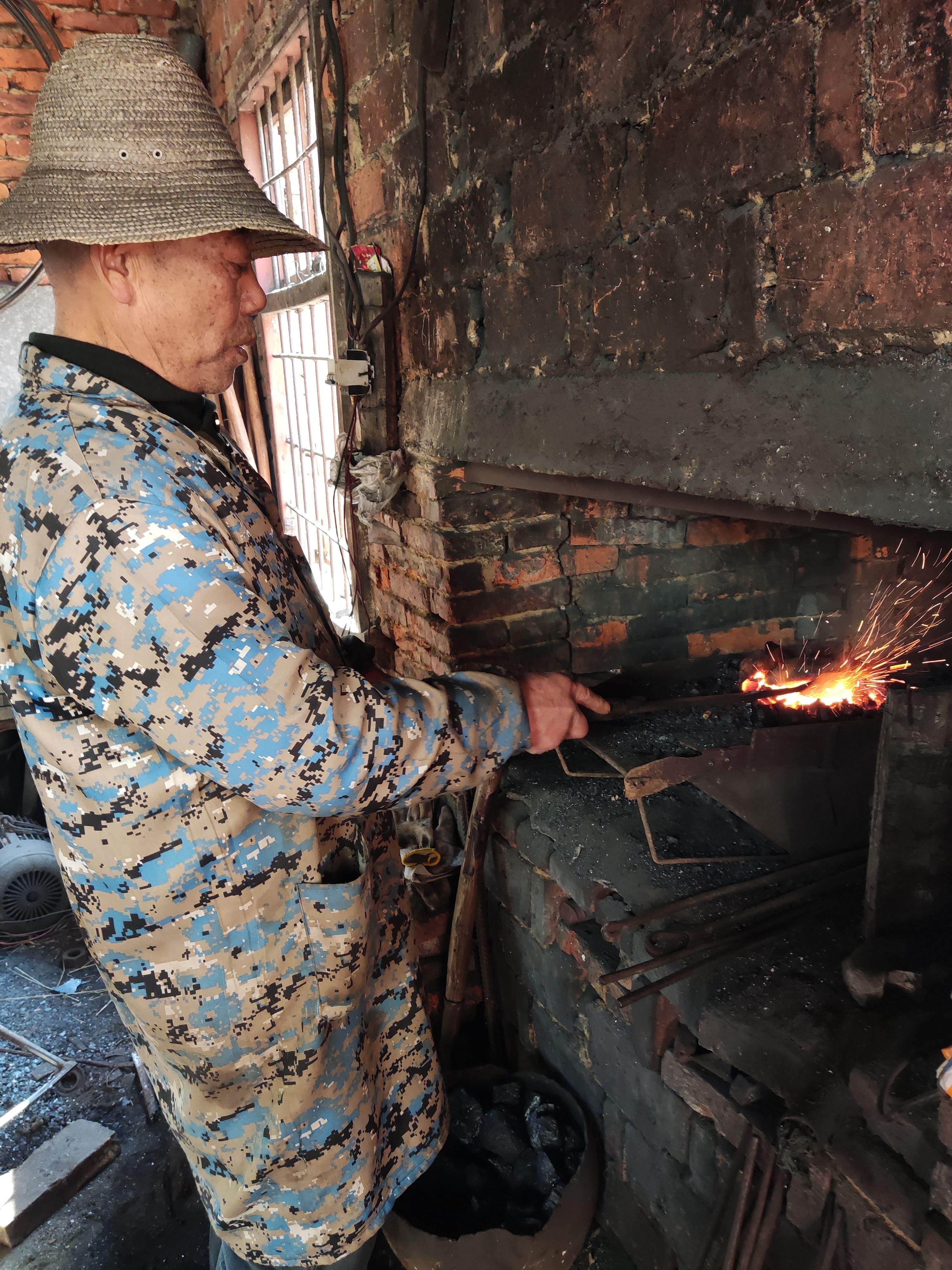 只是打了一辈子铁,王玉应不愿意丢掉这个老手艺。如今一块生铁到了他的手上,再和钢巧妙融合,想打成什么形状,对老王来说都是一件很简单的事情。大集体年代,打一天铁只能挣0.8元钱,分田到户后,用一块生铁打成锄头或其他农具也只收1元钱。随着社会进步,炭和铁,还有人工工资一直在涨,现在打个锄头要收40多元。