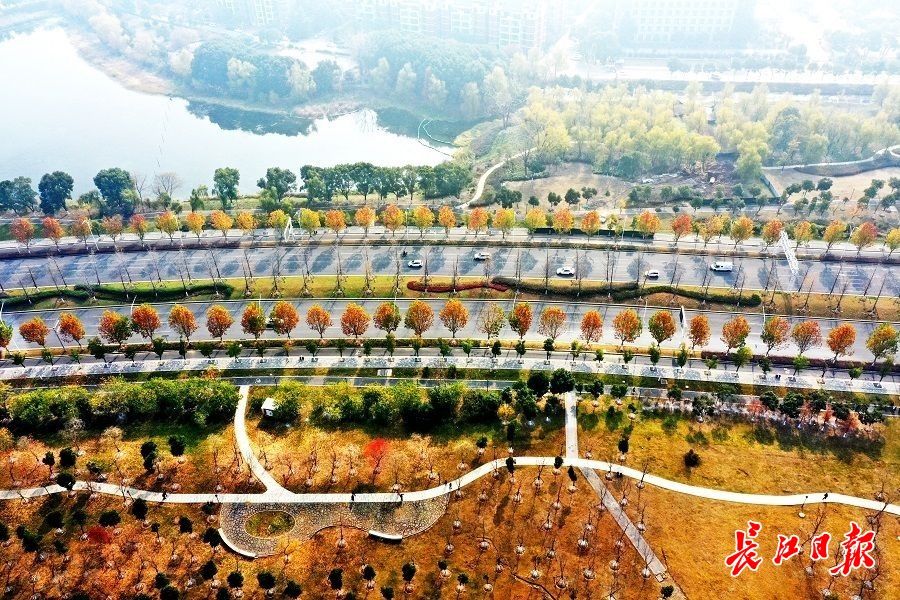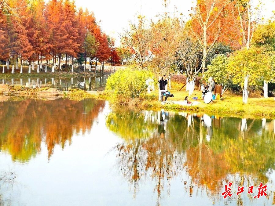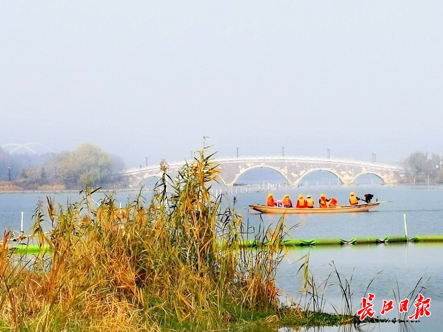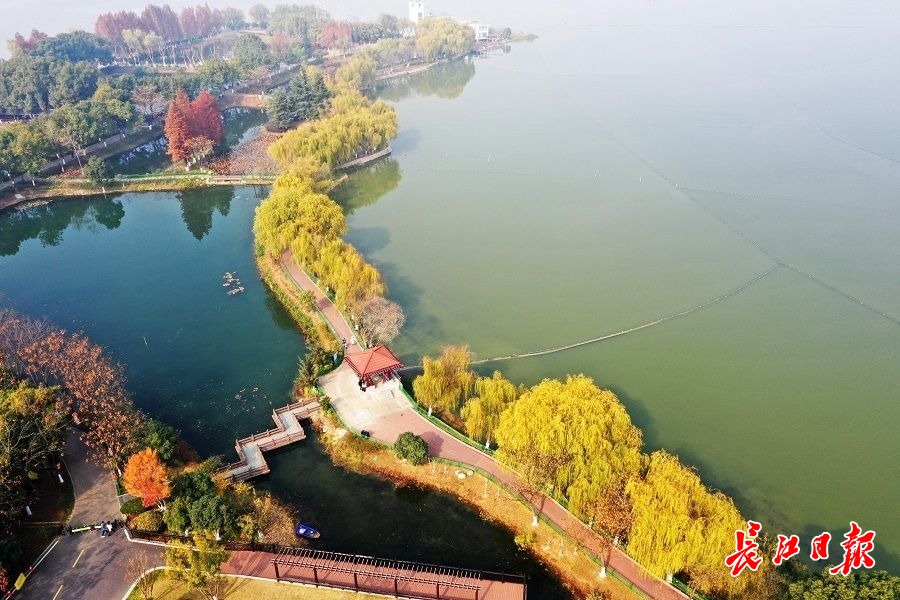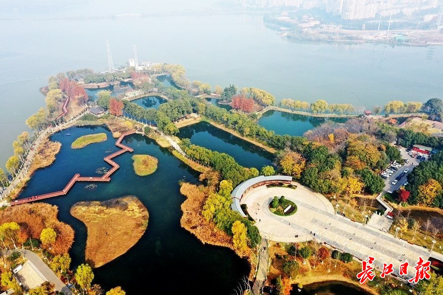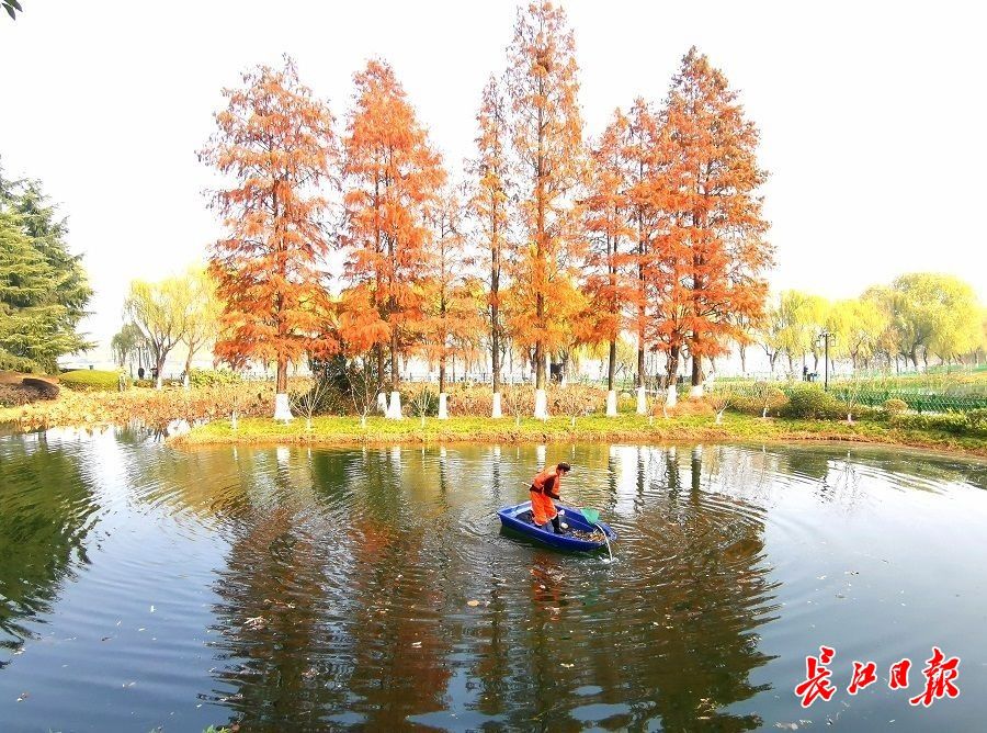 长江日报大武汉客户端12月10日讯 12月9日,天气晴朗,金银湖国家城市湿地公园,各种树木、花草在阳光照射下色彩斑斓。工人在清理湖面上漂浮的落叶,或划着浮船在种植净化湖水的水草。城市湿地美景吸引不少市民在这里拍照打卡。(长江日报记者金振强 摄影报道)