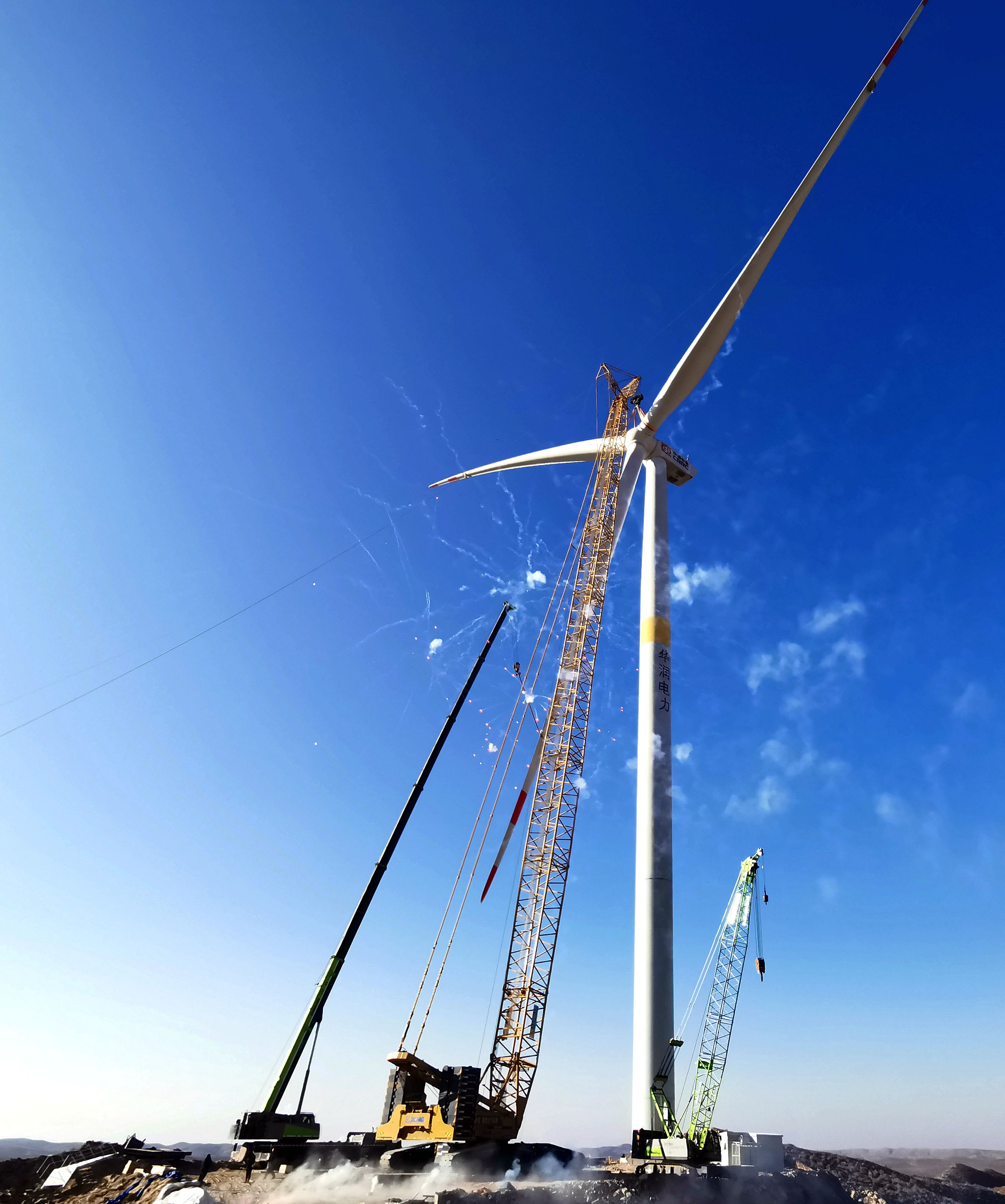 项目部在施工过程中秉承“一天也不耽误,一天也不懈怠”的企业精神,克服北方风大、冬季天气寒冷带来的不利因素影响,经过5个多月的艰苦奋战,提前15天完成了该项目风机基础施工和14台风机吊装工作,为下步并网发电创造了条件。