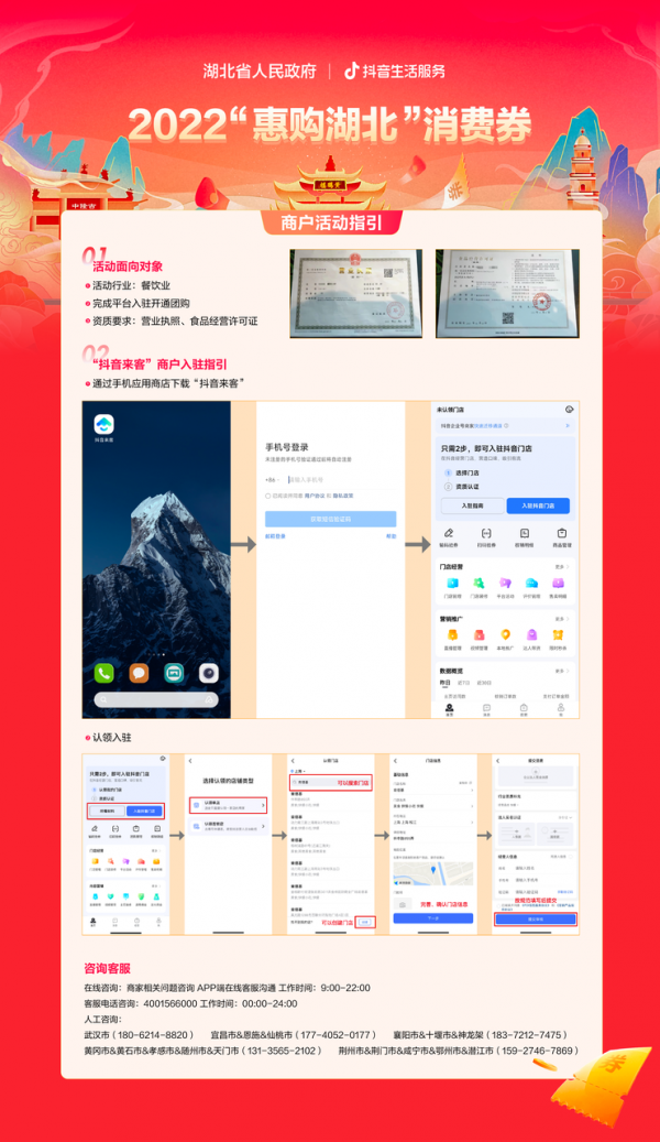 据了解,本次抖音生活服务平台消费券发放将覆盖湖北省内17个地市州餐饮行业。商家入驻抖音生活服务平台且成功报名即可参与本次消费券活动。